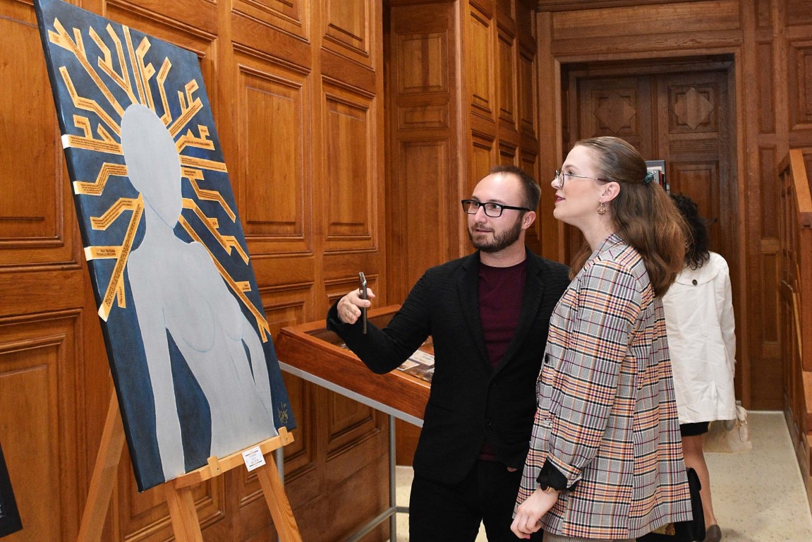 U sklopu ove, nadasve zanimljive izložbe posjetitelji će imati priliku vidjeti mali djelić tog segmenta fantastike. Likovni umjetnici su iznijeli svoju viziju buduće samosvjesne sintetičke osobe. Neke od njih čitaju kultna književna ostvarenja. Na drugim pak slikama ima satire u kojoj umjetna inteligencija lukavo koristi suvremeniju tehniku ribolova, dok su drugi umjetnici išli u simboliku priče. Također, u jednoj interpretaciji može se vidjeti već spomenuti kôd po kojem umjetna inteligencija funkcionira, kao i portrete inspirirane našim književnim velikanima.