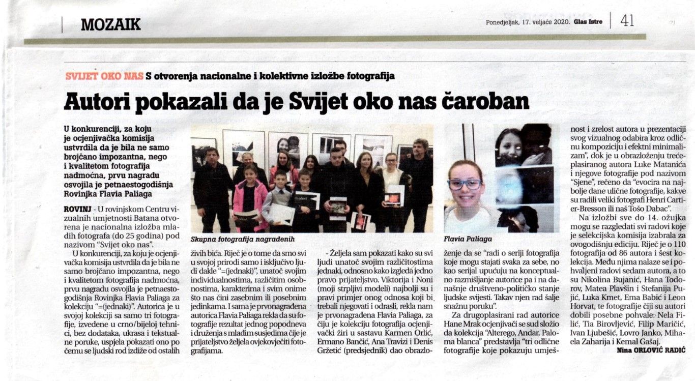 Po jedna fotografija naših članova Lovre i Filipa Maričića izabrana je u 110 fotografija i izložene su na Natječajnoj izložbi „Svijet oko nas“ koja je otvorena 15. veljače 2020. godine u Photo Art Gallery Batana u Rovinju