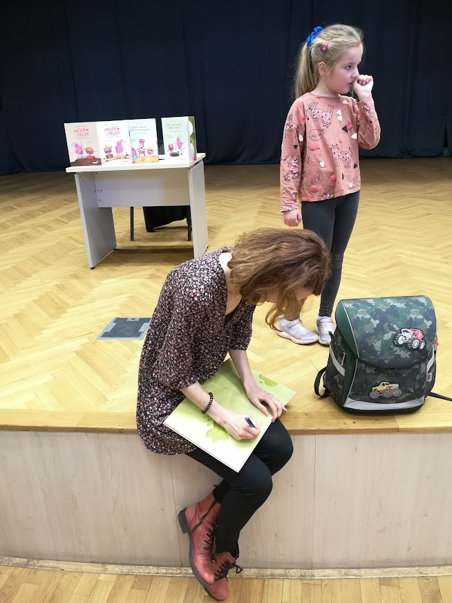 Sa prigodnim programom započeli smo već u poslijepodnevnim satima kada nam je na druženje došla poznata književnica za djecu i mlade Jelena Pervan koja je u Centru kulture Matija Petar Katančić održala druženje/pričaonicu sa predškolcima iz DV Maza Valpovo i učenicima razredne nastave OŠ M.P.Katančić. Osim razgovora, Jelena je pročitala i jednu od svojih slikovnica o Mrljeku i Prljeku te najavila nove avanture ovih omiljenih dječjih likova, što je posebno razveselilo djecu. Poslije druženja, Jelena je potpisivala slikovnice svojih malih čitatelja, a ovaj lijepi susret ovjekovječen je i grupnom fotografijom.