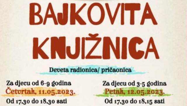 Deveta po redu „Bajkovita knjižnica”, radionica/pričaonica za djecu održati će se u dvije grupe i dva termina: