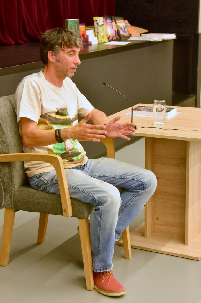 Ovaj rock-glazbenik, pisac znanstvene fantastike te voditelj i urednik emisije Na rubu znanosti pričao je o svojim knjigama, ali i o puno širim temama o kojima govori u emisiji Na rubu znanosti, orijentiravši se pretežno na transhumanizam.