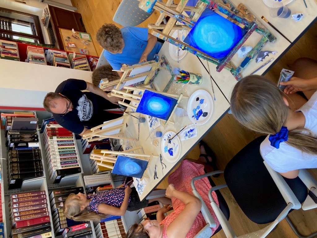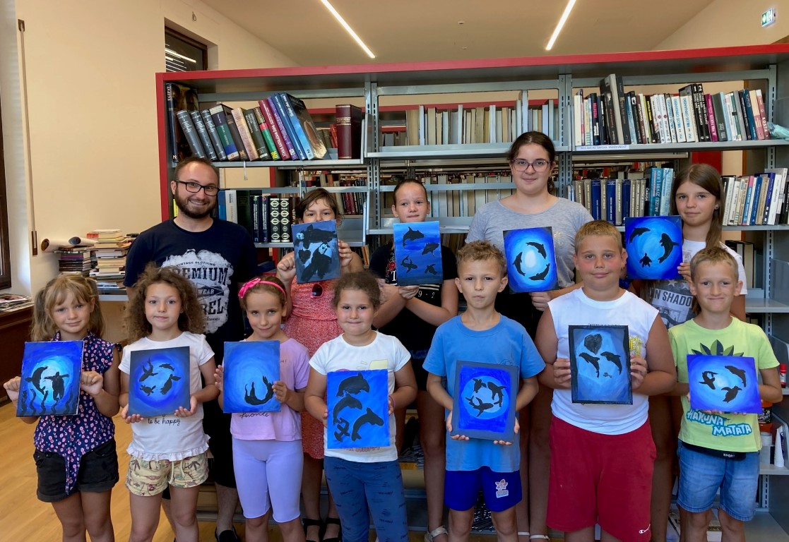 Ovoga puta radionicu je vodio Tin Lacković iz Belišća, a razigrani osnovnoškolci svoje su marljive ruke uposlili izradom kreativnih slika. Uz pomoć kista, akrilnih boja i morskih motiva, djeca su naslikala dubine mora i što se u njima krije, a svoje radove ponijela su kući.