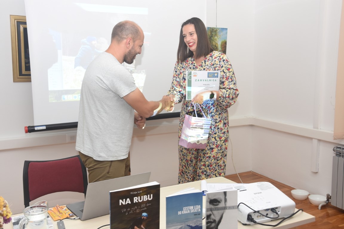 Hrvoje Jurić je fotograf, biciklist i putopisac koji je biciklom iz Zagreba otišao u Bangkok, pješačio više od tri tisuće kilometara kroz Južnu Ameriku i biciklirao po hladnim norveškim noćima. Valpovačkoj publici je, u svojem zanimljivom i inspirativnom jednosatnom predavanju, Hrvoje ispričao sve o početcima, pripremanju i osmišljavanju svih dosadašnjih putovanja kao i o svom najnovijem poduhvatu - prelasku rute od Osla do Nordkappa na električnom biciklu kojeg je detaljno opisao u svojoj knjizi „Put sjevera”. Posebnom ugođaju ove lijepe večeri dodatno su pridonijeli i Max i Ena koji su razgalili srca svih prisutnih.