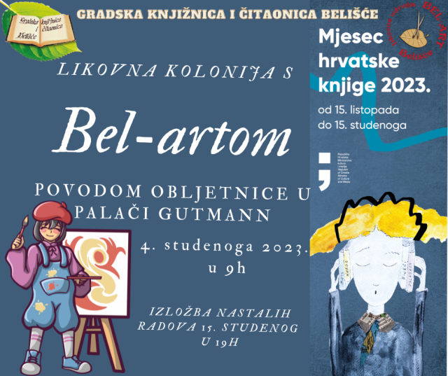 BELIŠĆE U suradnji s Gradskom knjižnicom i čitaonicom Belišće u novoobnovljenom Paleju članovi Bel-arta pripremaju likovnu koloniju koja će se održati u subotu 4. studenoga 2023. godine, s početkom u 9 sati.