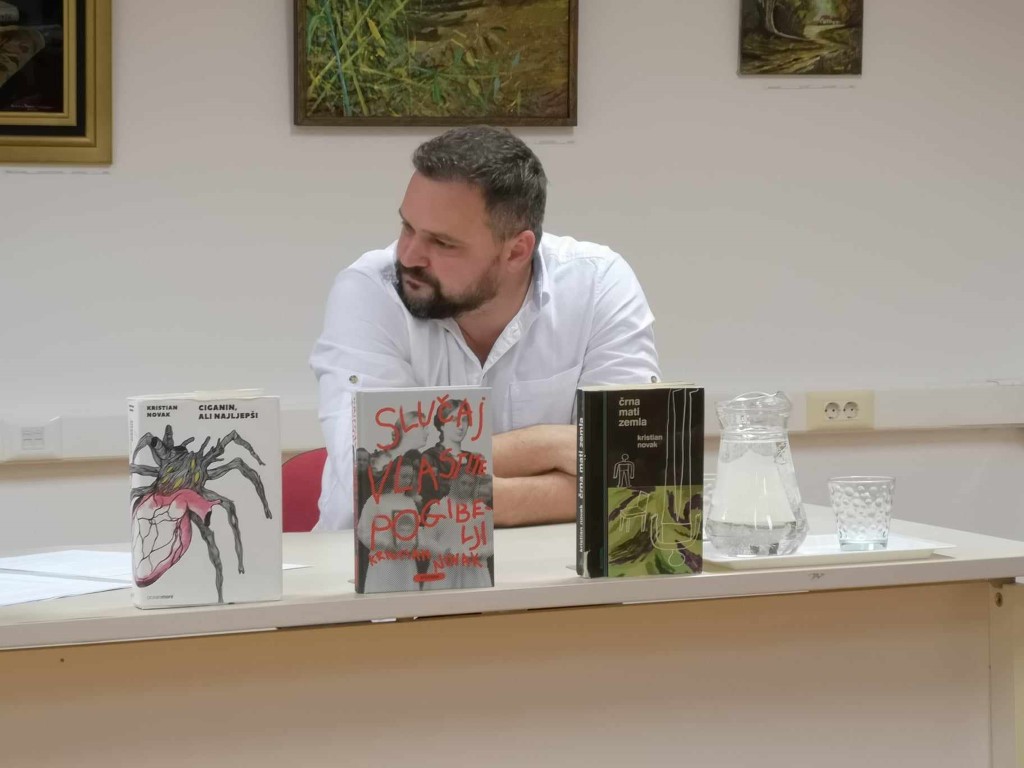 Kristian se u razgovoru dotakao svojih početaka u pisanju i kako je tekao njegov put od možebitnog pravnika do profesora na Odjelu za germanistiku. Nakon kratkog osvrta na prethodne romane Obješeni, Črna mati zemla i Ciganin, ali najljepši, razgovor je okrenut prema najnovijem izdanom naslovu Slučaj vlastite pogibelji. Autor je naglasio da mu ovu priču nije bilo lako ispričati, da je imao svoje dvojbe ali je bio odlučan u namjeri da ona ugleda svjetlo dana. Da previše ne otkrivamo, pustiti ćemo vas da knjigu sami pročitate i donesete svoj sud. Jedino ćemo reći da je i ovaj roman ništa manje Novakov. Na kraju je Kristian zahvalio publici na zanimljivim pitanjima i na pitanje o svojim uzorima naglasio da „svi sadašnji i budući pisci stoje na ramenima prošlih velikana”.