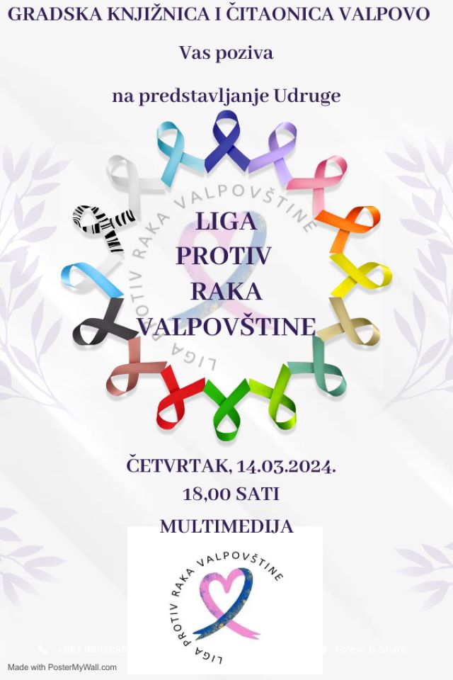 Predstavljanje Udruge „Liga protiv raka Valpovštine” u Gradskoj knjižnici i čitaonici Valpovo