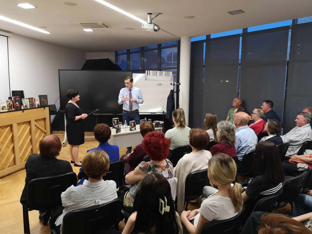 U jednosatnom razgovoru s moderatoricom, Sandrom Miljački Andrić, svim prisutnima govorio je o svom dosadašnjem radu i knjigama. Poseban naglasak je stavio na djelovanje Matice hrvatske, čiji je predsjednik i publici predstavio promjene koje se uvode unutar ove cijenjene ustanove.