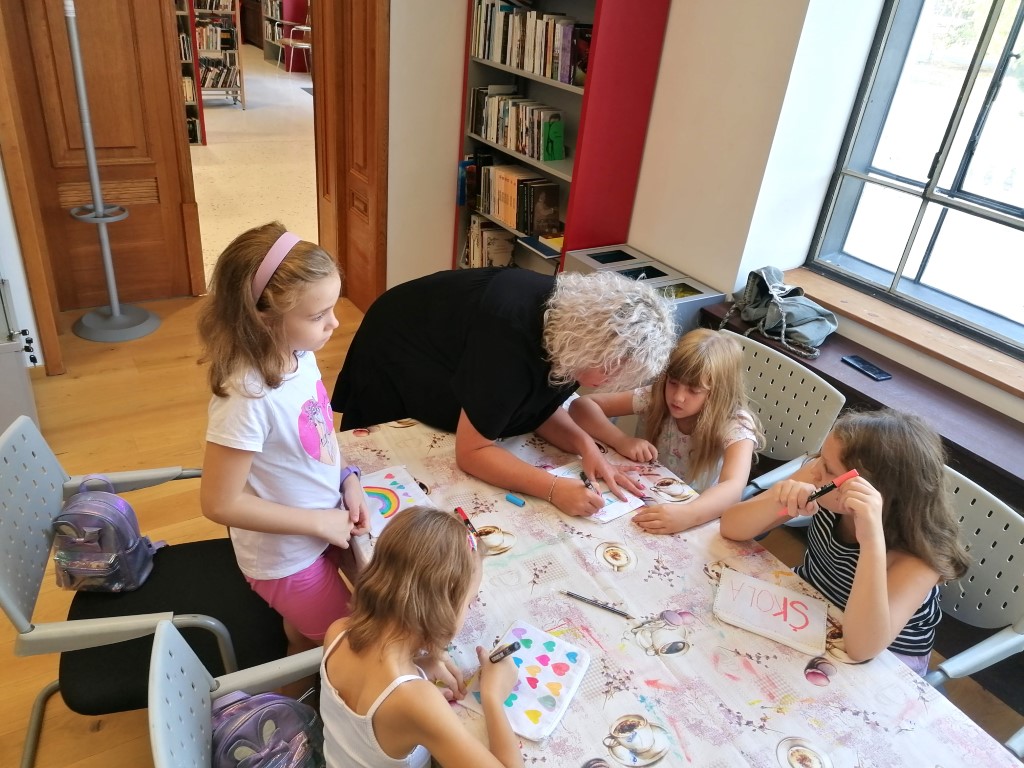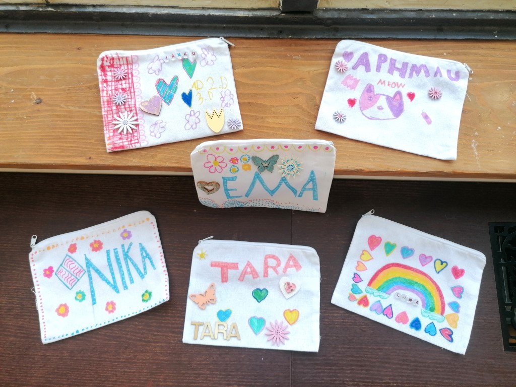 Posljednja je održana jučer, u četvrtak, 5. rujna 2024. i bila je namijenjena osnovnoškolcima. Voditeljica je ponovno bila učiteljica Marija Šimić iz Valpova koja je ovu radionicu učinila posebnom jer je odlučila da tematika radionice bude iznenađenje za male kreativce. Tako su prijavljena djeca saznala što će točno raditi na radionici tek kada su došli u Knjižnicu. Obzirom na to da nova školska godina počinje idućeg tjedna, učiteljica Marija osmislila je zanimljivu, prigodnu radionicu za povratak u školske klupe. Svi sudionici ugodno su se iznenadili kada su vidjeli da će dobiti priliku napraviti vlastite, originalne pernice za školu. Za izradu pernica poslužile su im bijele platnene torbice koje su mogli ukrasiti kako god su željeli koristeći Posca flomastere i ukrase u obliku slova, cvijeća, leptira i drugih motiva. Uz dobru zabavu i puno truda, osnovnoškolci su napravili maštovite, predivne pernice koje će ponosno koristiti u školi i izvan nje.