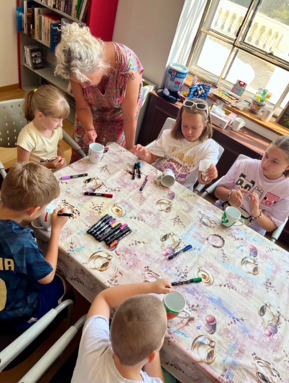 Sudjelovalo je 13 djece različitog uzrasta koja su na ovoj radionici oslikavala bijele keramičke šalice popularnim Posca flomasterima. Kako to učiniti, pokazala im je kreativna učiteljica Marija Šimić iz Valpova koja je vodila radionicu.