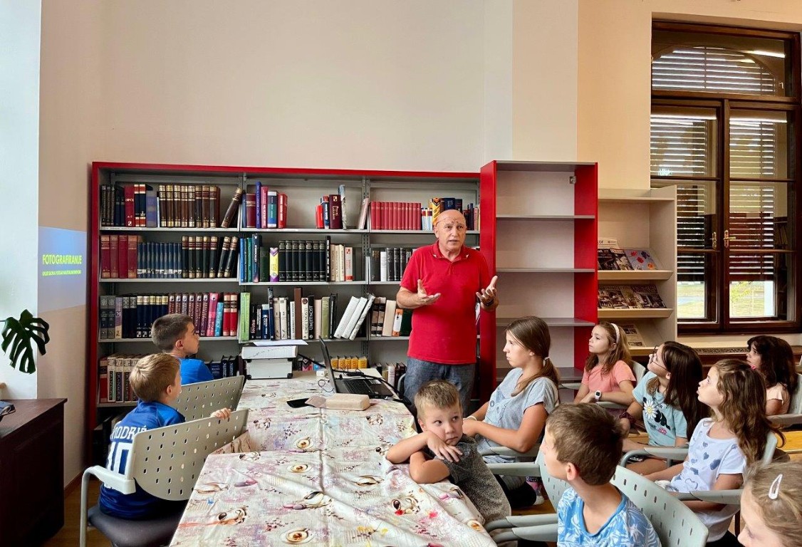 Radionicu za osnovnoškolce vodili su Dragan Francuz i Marijan Antolović, mentori u Zajednici tehničke kulture Valpovo-Belišće. Nakon teorijskog dijela koji je vodio Dragan, djeca su mogla isprobati fotografirati pomoću digitalnih fotoaparata, uz mogućnost isprobavanja mnogih funkcija. Bilo je zanimljivo vidjeti kako najmlađi traže najbolji kadar te se učeći i zabavljaju u knjižnici. Uz pomoć mentora Francuza i Antolovića, naučili su koristiti postavke za krupni plan i makro fotografiju.