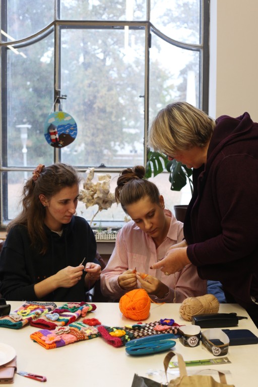 Ova je radionica bila posebna jer su se uobičajenoj ekipi žena pridružile tri nove žene, početnice u pletenju. Njima je voditeljica Štrikeraja Suzana Zdunić iz Belišća pokazala osnove tehnike pletenja koje su one bez problema usvojile.