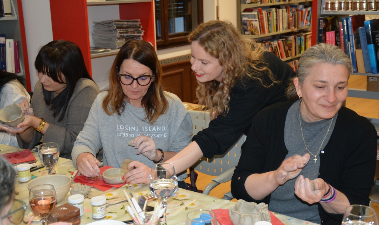 BELIŠĆE Gradska knjižnica i čitaonica Belišće zbog velikog interesa organizirala je još dvije radionice pod nazivom „Glina i vino“ koje su se održale prošloga tjedna, 5. ožujka, i jučer, 12. ožujka 2026. godine.