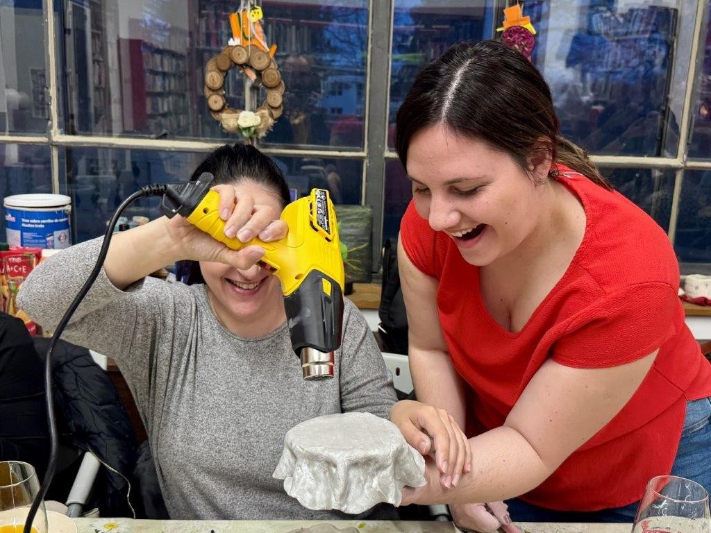 Obje ponovljene radionice, baš kao i prvu, vodila je mlada kemičarka i keramičarka Antonia Vicić iz Belišća. Ona je polaznicama radionica pokazala osnove ručnog oblikovanja keramike, odnosno izrade unikatnih predmeta od gline. Njezine izvrsne upute i odlično objašnjavanje pomoglo je svim sudionicama da vlastitim rukama kreiraju predivne, maštovite i uistinu originalne glinene predmete. Pri tome je zasigurno pridonijelo i ugodno druženje u opuštenom, pomalo meditativnom ozračju uz pokoju kapljicu dobroga vina.
