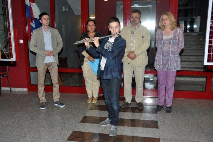 Sasvim nova i unikatna izložba pod nazivom Umjetnost u staklu otvorena je u 20 sati. Radove u tiffany tehnici i tehnici vitraja izložili su Danko i Željka Vilupek koji žive u Rijeci. Zamjenik gradonačelnika Belišća Domagoj Varžić otvorio je ovu izložbu istaknuvši kako su radovi u ovim tehnikama zaista posebni i ukrašavat će hodnik zgrade tjedan dana na dosad još neviđen način. U programu su sudjelovali i polaznici Glazbene škole Belišće Davor Arsenić i David Petrović koji su izveli dva glazbena broja, prvi na flauti, a drugi na gitari.