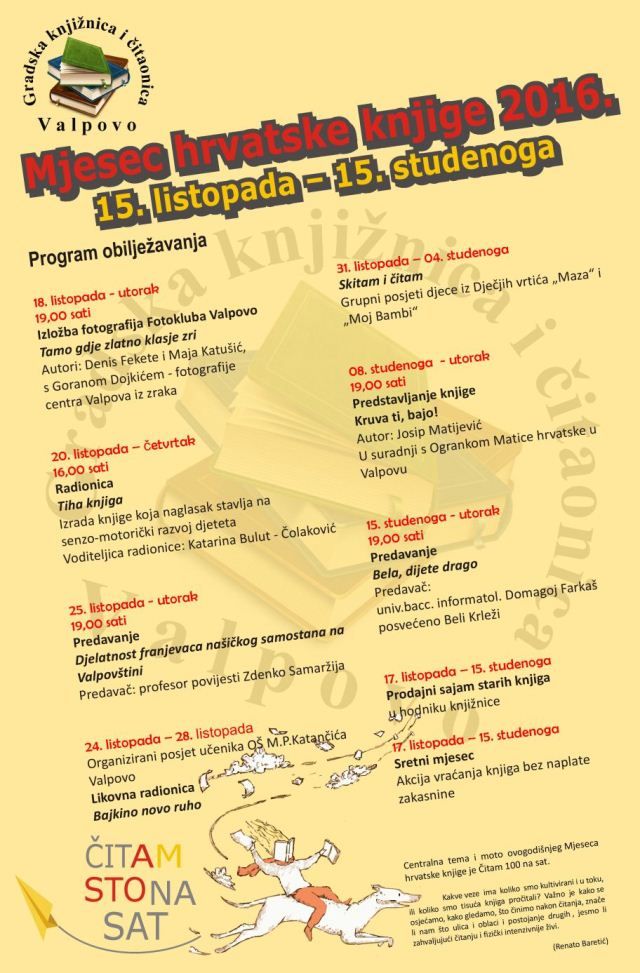 VALPOVO Mjesec hrvatske knjige nacionalna je kulturna manifestacija posvećena hrvatskoj pisanoj riječi čiji je cilj promicanje hrvatske knjige i kulture čitanja.