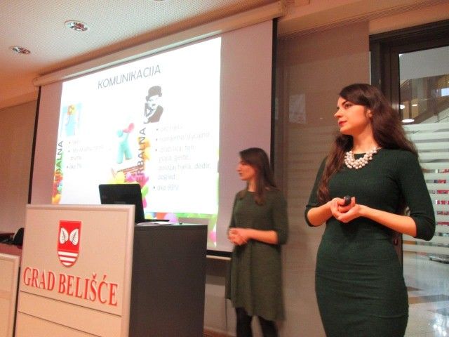 Predavanje „Govori li tijelo brže od mozga?“ održano je u utorak, 21. veljače, u Velikoj vijećnici grada Belišća, a održale su ga, također, studentice prve godine diplomskog studija psihologije Filozofskog fakulteta u Osijeku, Diana Viduka i Ivana Galić. Svrha predavanja bila je na zanimljiv način predočiti kako ljudi komuniciraju putem neverbalnih znakova i pokazati kulturološke razlike u neverbalnoj komunikaciji.