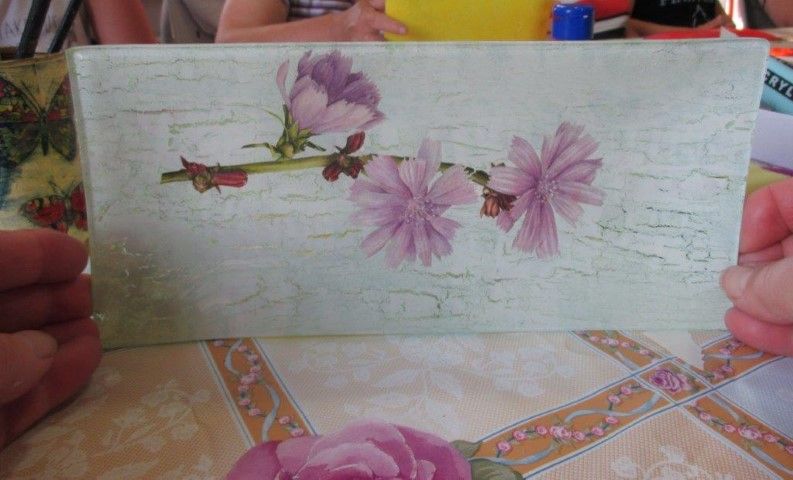 Na radionici je bilo ukupno dvanaest žena različite dobi koje su naučile tehniku raspucavanja s krekl lakom koristeći dekupaž papir na staklenoj tacni. Svi gotovi radovi ispali su jako lijepi, a samu tehniku pokazala im je voditeljica radionice knjižničarka Jasna Andrišić. Ona ih je također upoznala s mogućim radionicama koje će se održati na jesen, a radi se o pletenju, heklanju i zlatovezu.