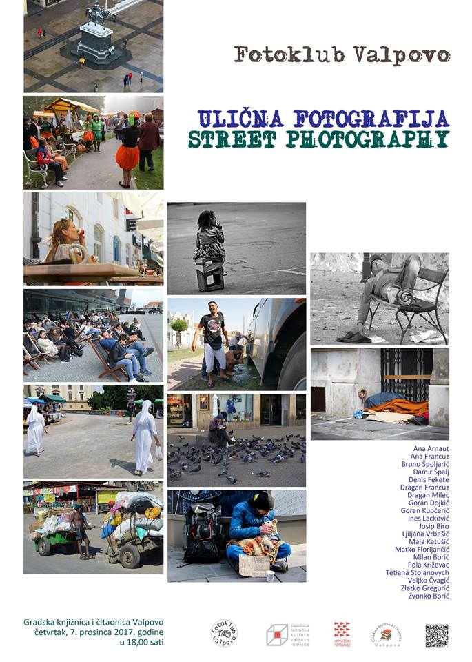 Svake godine se Fotoklub fokusira na određenu temu – apstrakciju, prirodu, posao, kontraste…Ove godine tema je bila ulična fotografija. Glavna karakteristika ulične fotografije je hvatanje trenutka, situacije koju su neponovljive, iskrenost, nenamještanje kadra. Kako se radi o ulici, o javnom mjestu, skoro je nemoguće pa da se određena situacija ponovi, stoga je glavni cilj uličnog fotografa znati biti na pravom mjestu u pravo vrijeme. Na natječaj se javilo 20 autora sa 301 fotografijom. Selektori, Blanka i Zvonimir Hajnc izabrali su 25 fotografija koje će biti printane u formatu 72x50 cm na forexu. Otvorenje još jedne izložbe vrlo uspješnog fotokluba održat će se u 18,00 sati u Multimediji knjižnice. Očekujemo Vas s radošću!