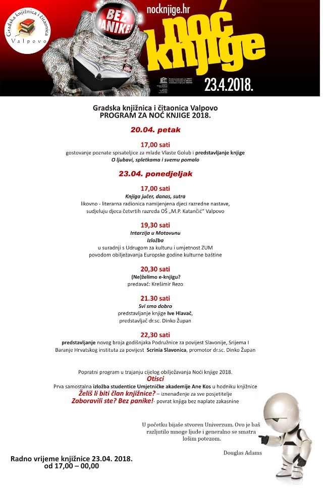 Noć knjige u Gradskoj knjižnici i čitaonici Valpovo – Bez panike!