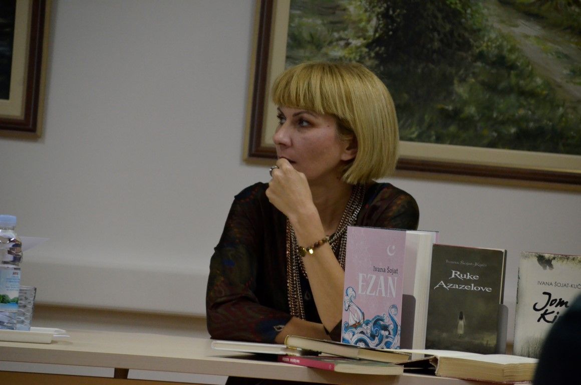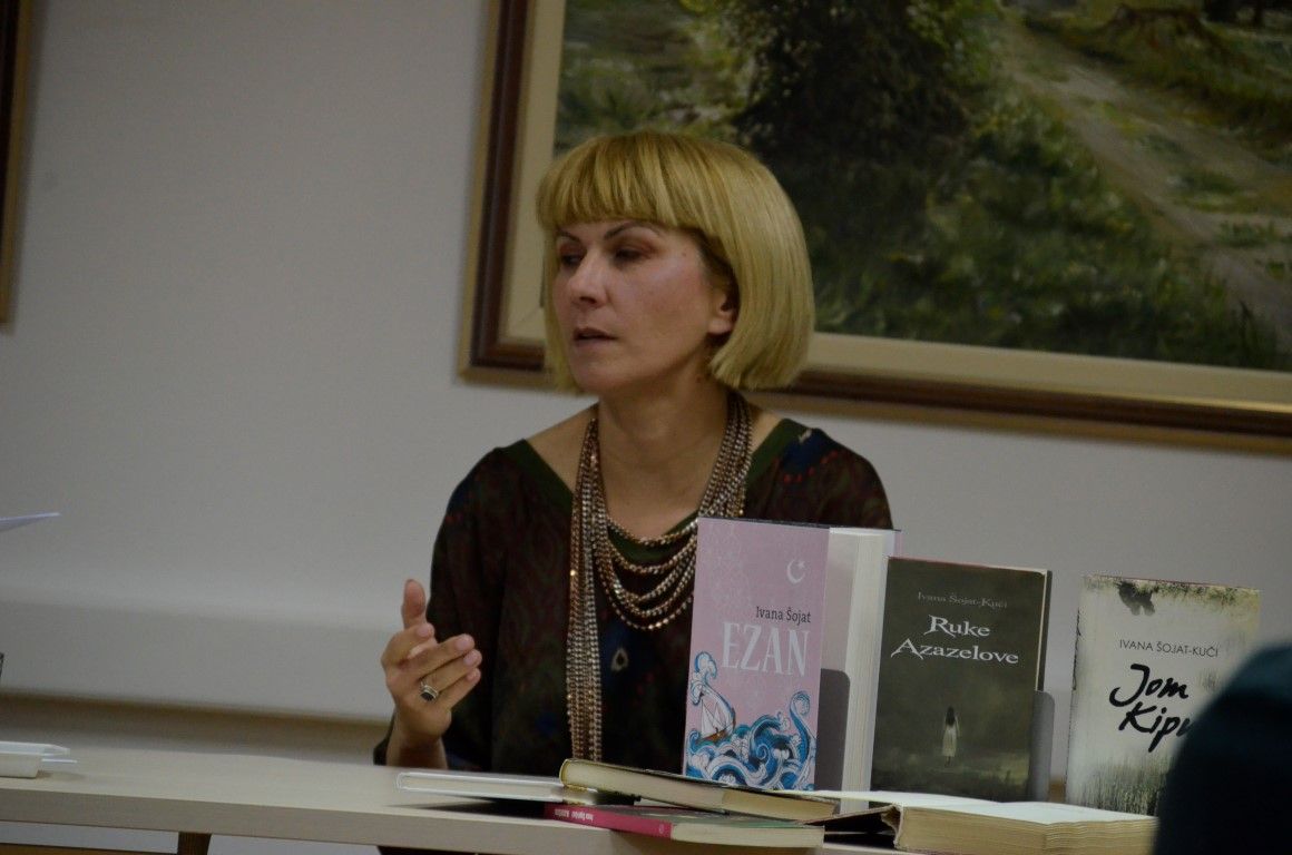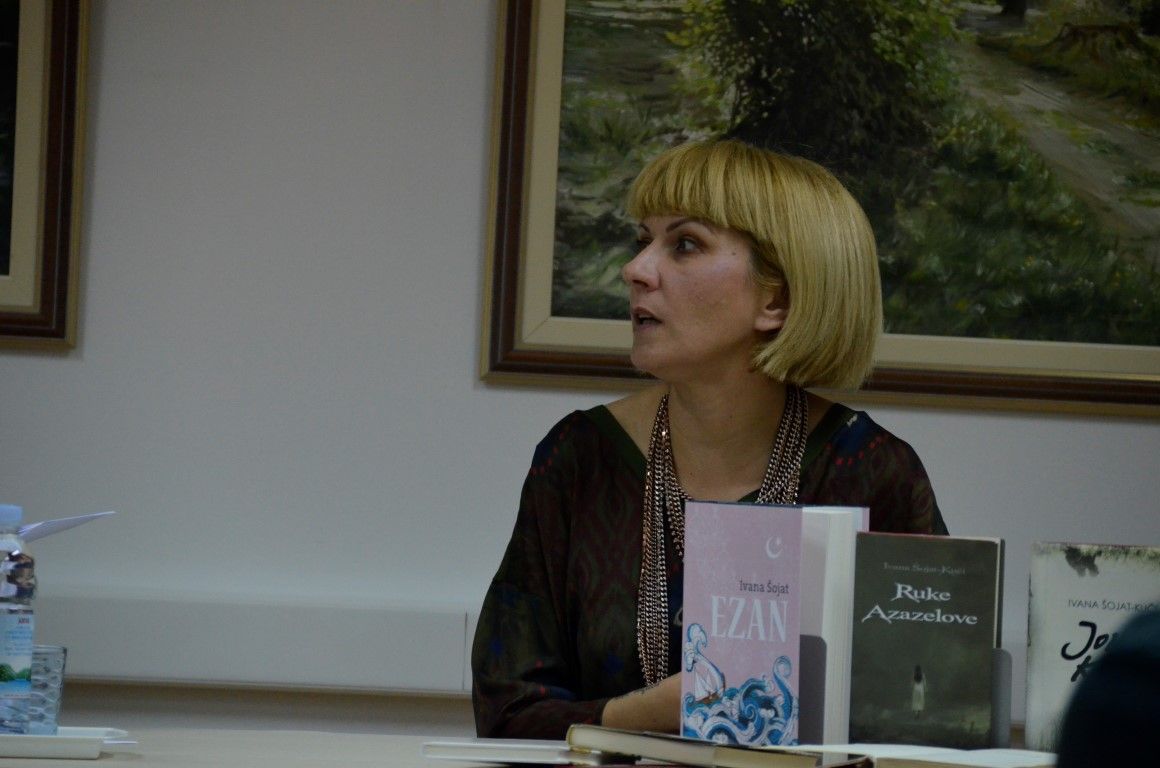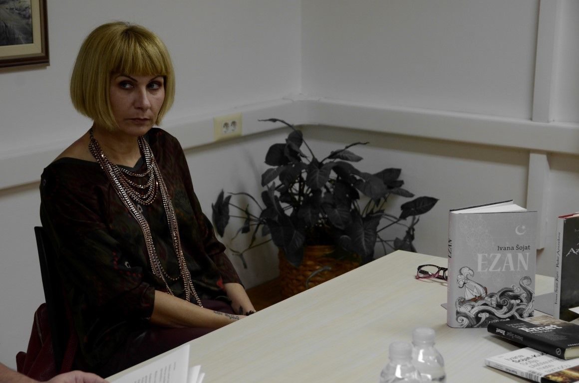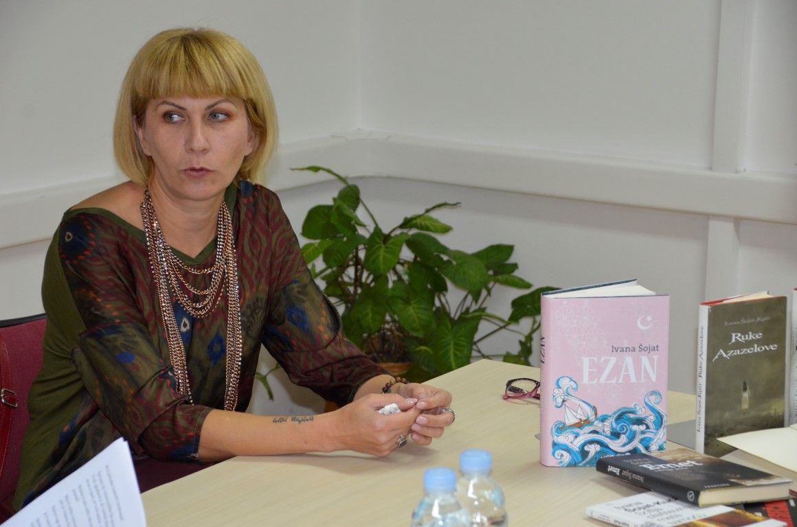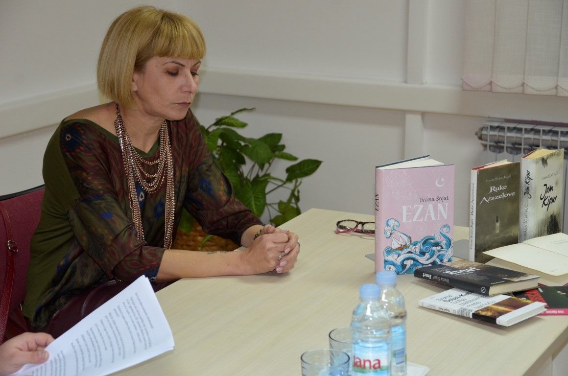 U jednostanom razgovoru - prisnom i neusiljenom, autorica je između ostaloga, ekskluzivno valpovačkoj čitateljskoj publici predstavila svoju najnoviju knjigu Ezan, koja će svoju premijeru imati na Interliberu, roman kojeg nakladnik Fraktura, najavljuje kao…Duboko liričan, stilski i strukturno doveden do savršenstva, obogaćen poetskim slikama zaboravljene turske Slavonije šesnaestog stoljeća, Ezan Ivane Šojat roman je o ljudima i čovjekovu dobru i zlu, o nama danas koji se i ne razlikujemo toliko od ljudi iz šesnaestog stoljeća.