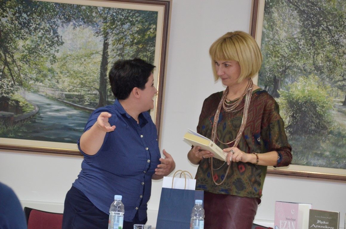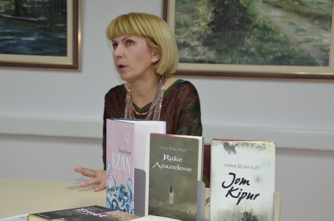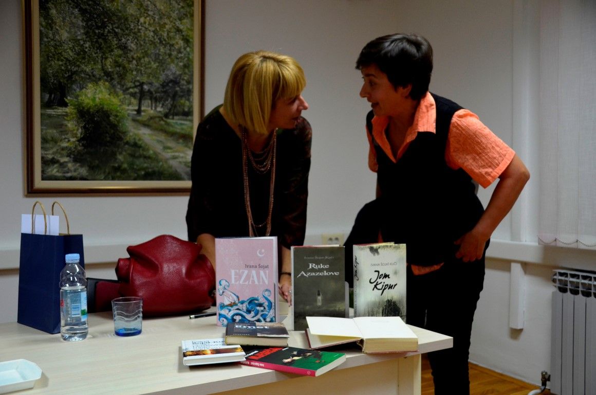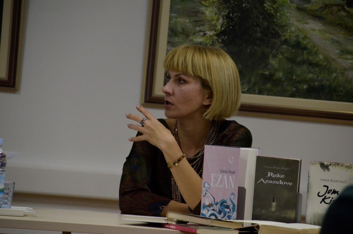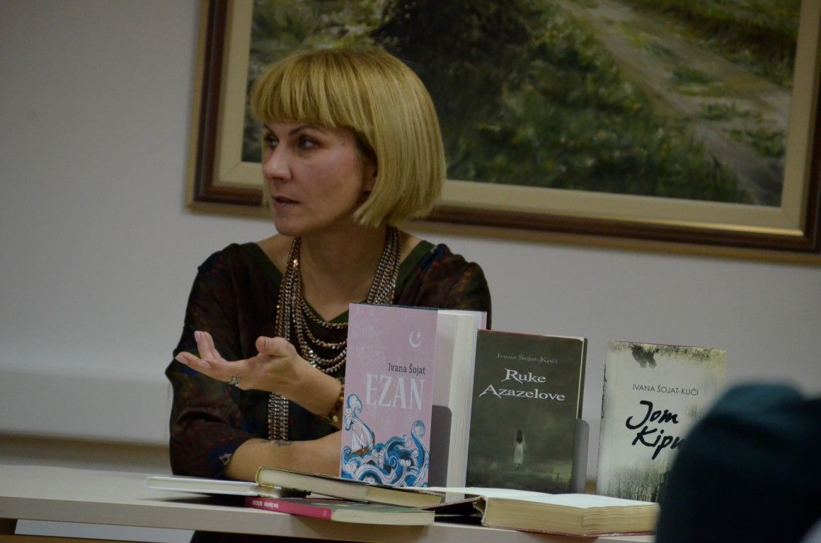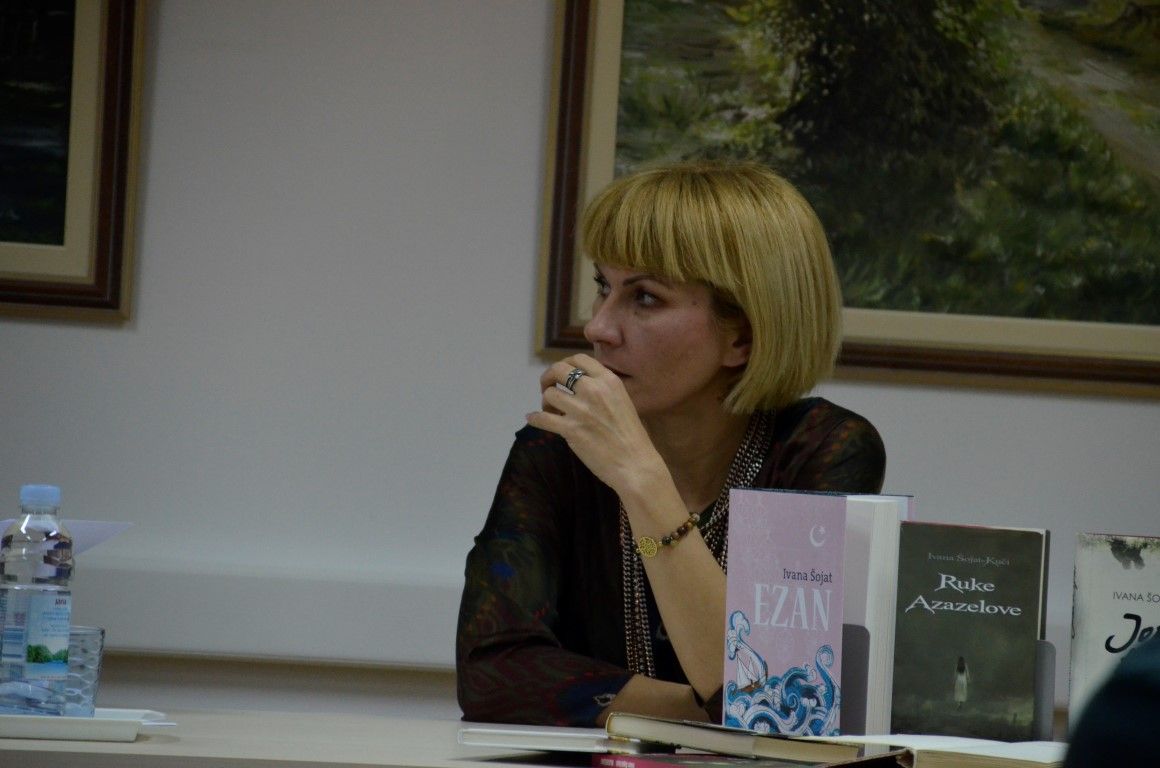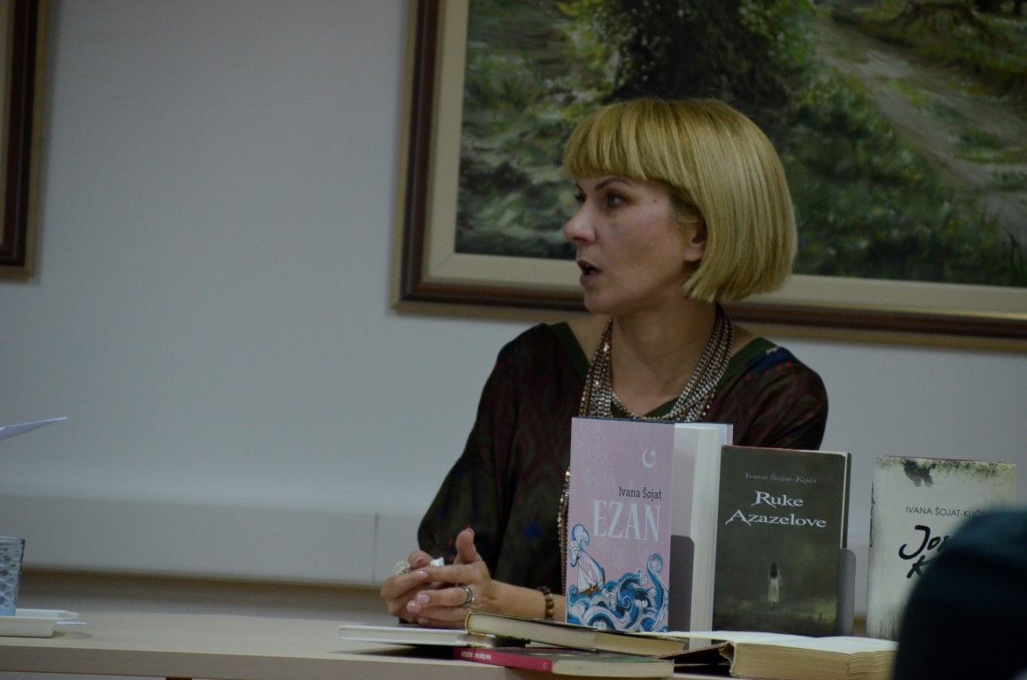 U jednostanom razgovoru - prisnom i neusiljenom, autorica je između ostaloga, ekskluzivno valpovačkoj čitateljskoj publici predstavila svoju najnoviju knjigu Ezan, koja će svoju premijeru imati na Interliberu, roman kojeg nakladnik Fraktura, najavljuje kao…Duboko liričan, stilski i strukturno doveden do savršenstva, obogaćen poetskim slikama zaboravljene turske Slavonije šesnaestog stoljeća, Ezan Ivane Šojat roman je o ljudima i čovjekovu dobru i zlu, o nama danas koji se i ne razlikujemo toliko od ljudi iz šesnaestog stoljeća.
