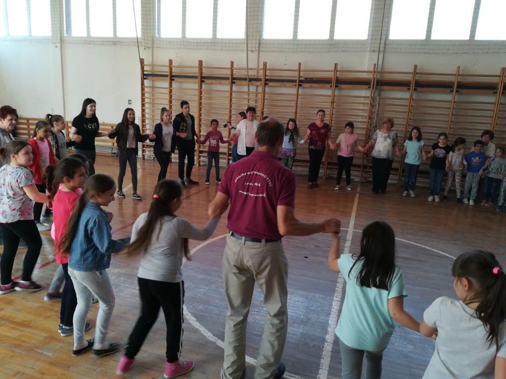 Nakon radionice, svi zajedno otišli su u sportsku dvoranu gdje su, uz pomoć učitelja plesa, naučili plesati nekoliko mađarskih plesova. Bilo je vremena i za sportsko druženje pa su učenici zajednički odigrali par košarkaških i nogometnih utakmica, a igrali su i graničara. Čitav ovaj posjet je pokazao kako je važno organizirati ovakve susrete, jer su se razvila i neka nova prijateljstva te naučila i pokoja mađarska i hrvatska riječ.