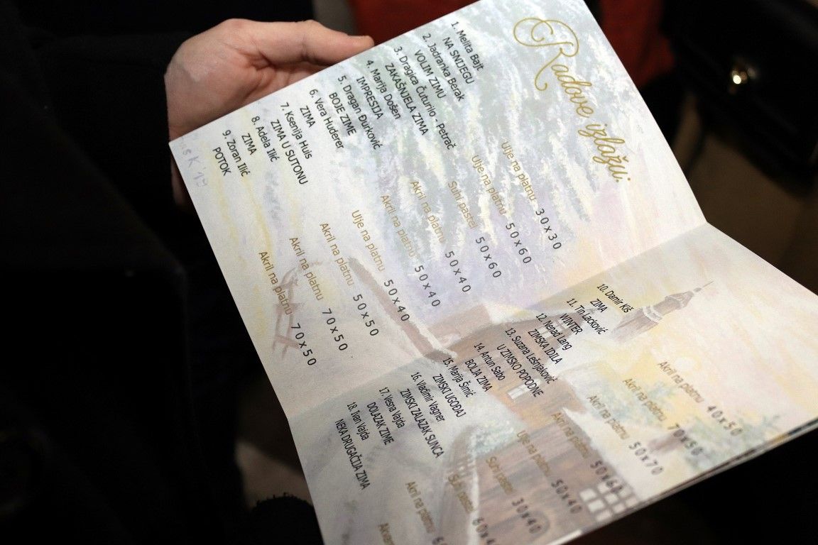 Svečanosti otvorenja doprinijela je knjižničarka Jasna Andrišić koja je pozdravila mnogobrojne posjetitelje te je rekla nekoliko riječi o predanom radu Likovne udruge „Bel-Art“. Nakon nje, svima prisutnima obratio se i predsjednik Udruge Ivan Vajda koji je istaknuo najvažnije značajke ove izložbe. Izloženo je 18 slikarskih radova stalnih članova „Bel-arta“ i 13 radova polaznika likovnih radionica koje članovi Udruge organiziraju za učenike osnovne i srednje škole. Tako su uz njihovu pomoć učenici uspjeli naslikati vlastite slike s motivima zime u tehnici suhog pastela.