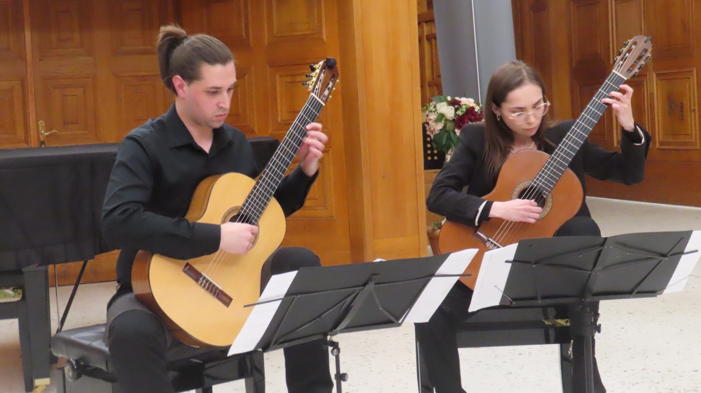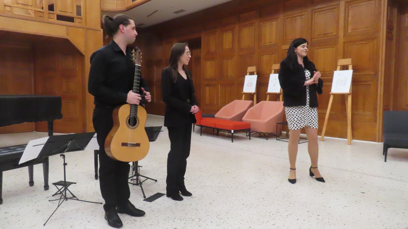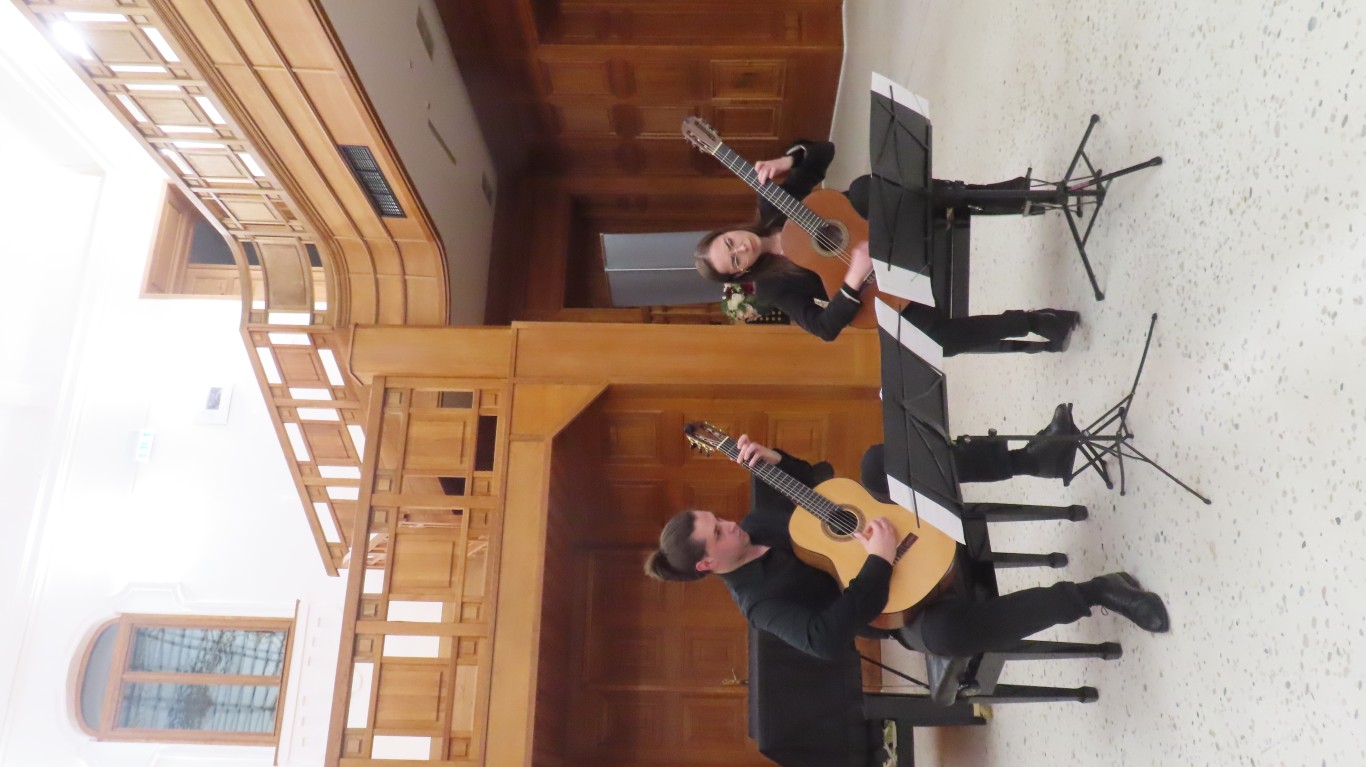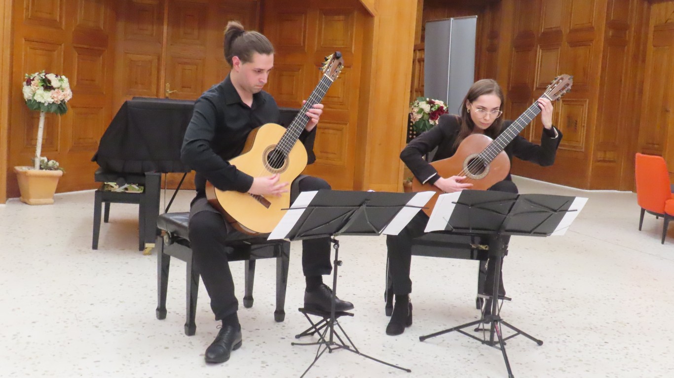 Mlada profesorica Glazbene škole Nikolina Medvedović predstavila se glazbom Sylviusa Leopolda Weissa i Isaaca Albeniza, a Borna Valentić skladbama J.S. Bacha, Mangorea i Neikruga, a potom su kao duet izveli skladbe Ide Presti, Diega Pujola i Manuela de Falle.