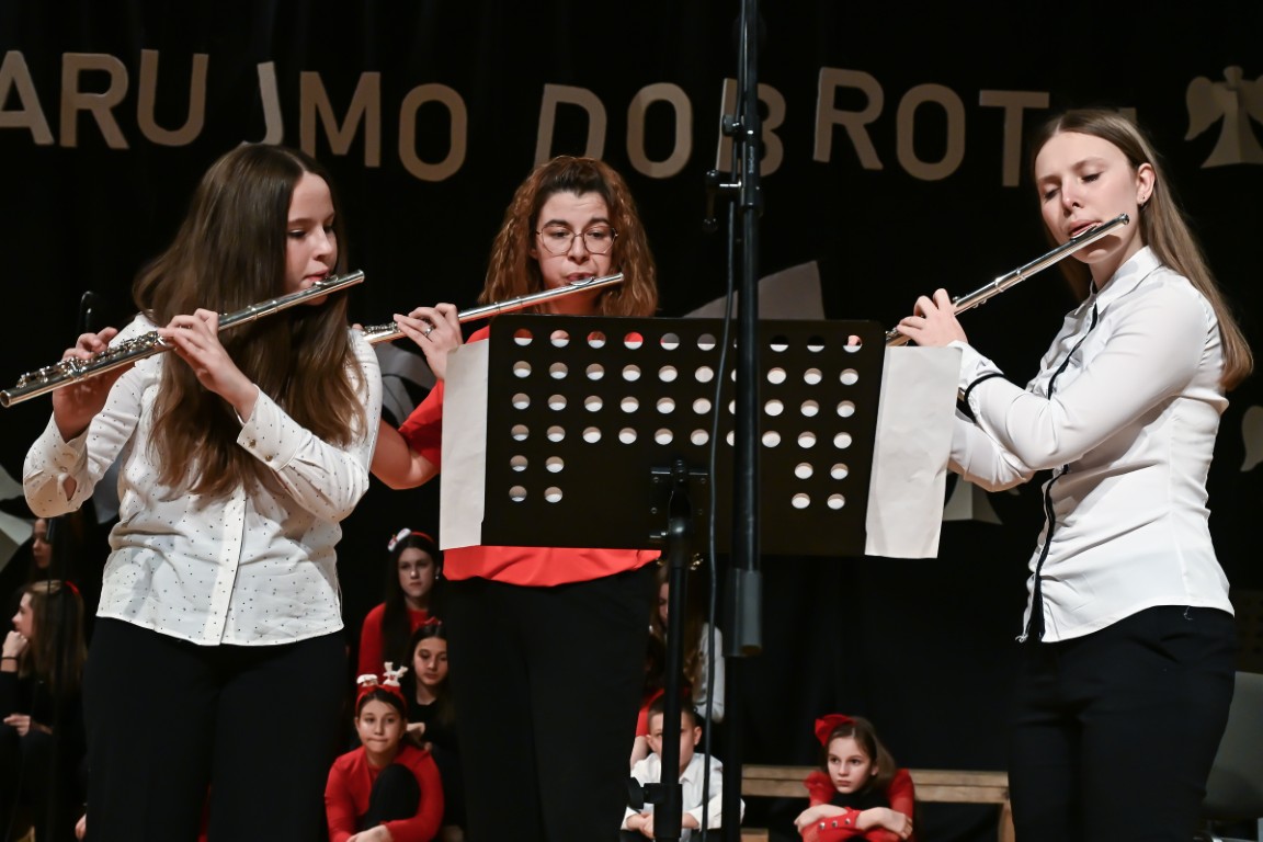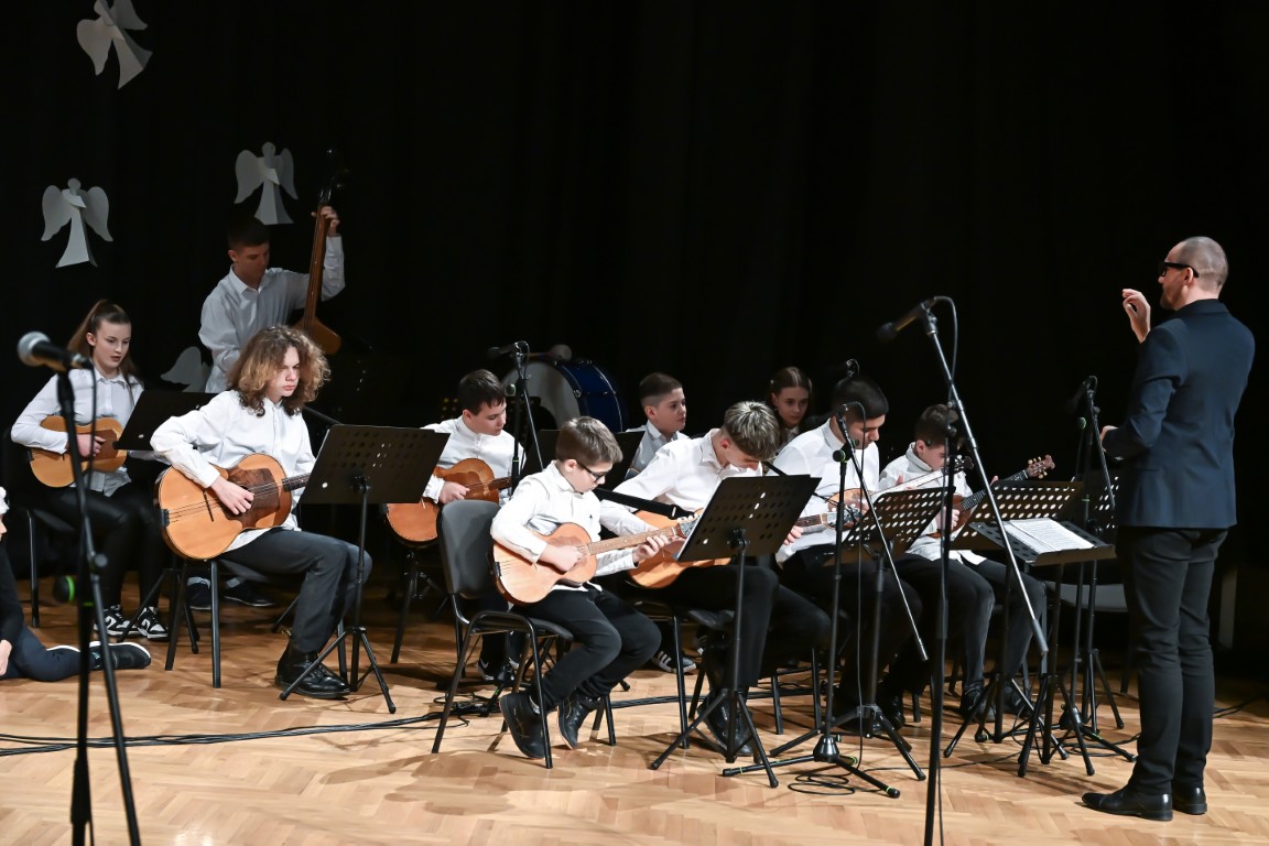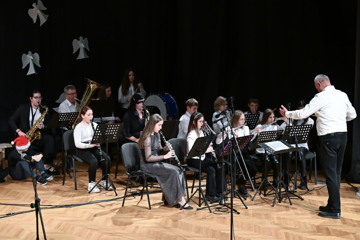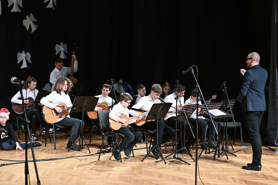 Na koncertu su se predstavili učenici svih uzrasta i odjela – od najmlađih polaznika glazbenih igraonica, preko solista, dua i trija, do većih ansambala poput tamburaškog orkestra, zbora i puhačkog orkestra. Raznolik i pažljivo osmišljen program donio je publici bogatstvo glazbenih izričaja i stvorio posebno blagdansko ozračje ispunjeno toplinom i radošću.