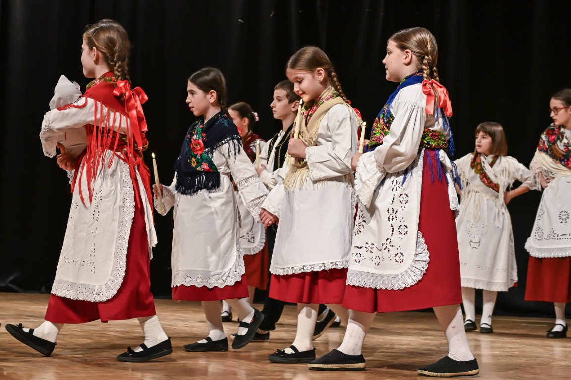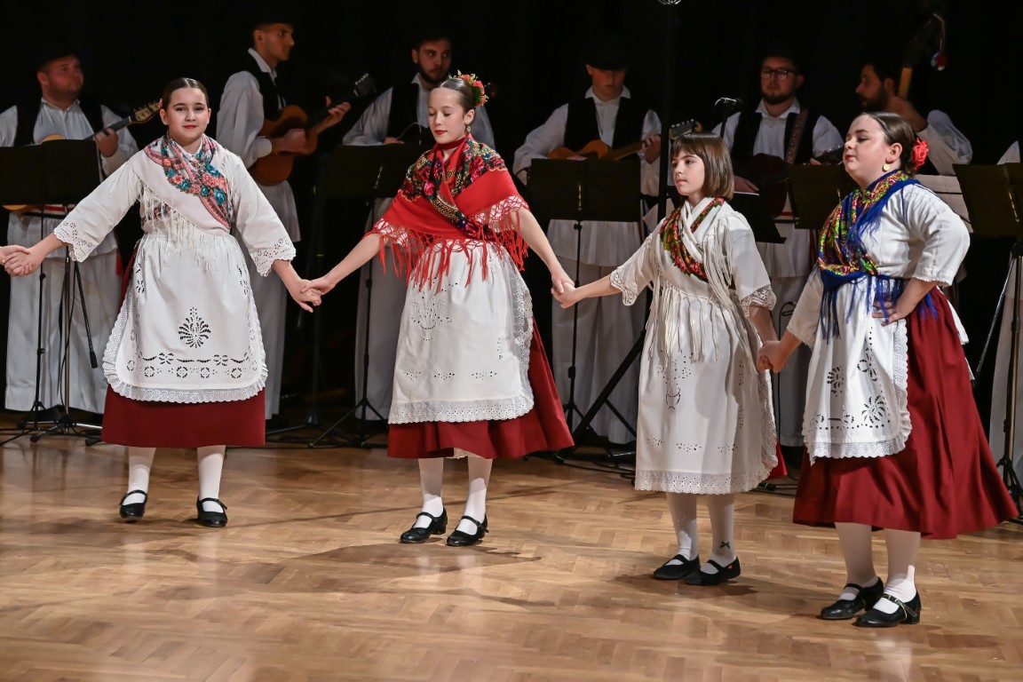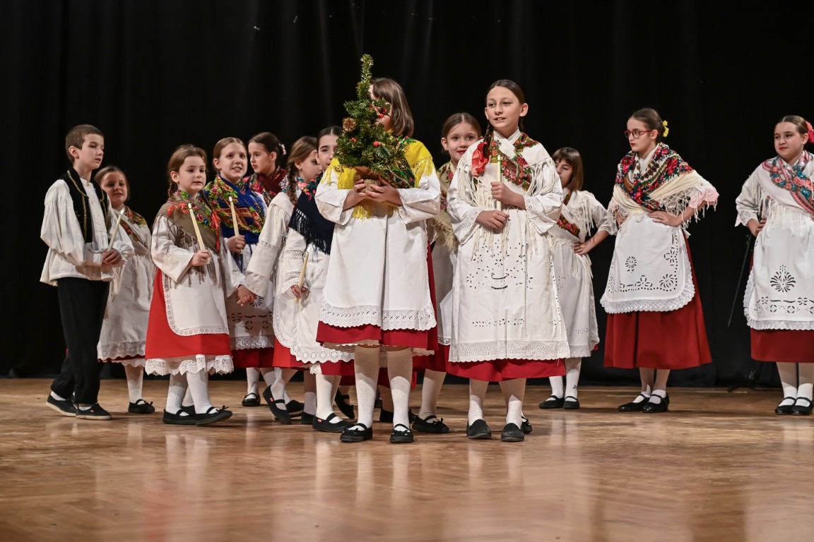 Izmjenjivale su se koreografije i sve skupine društva, s plesovima iz Bizovca, Valpova, Slavonije, starim splitskim plesovima, Srijemskim kolom, sugestivan nastup Livije Vranković s melodijom „Spavaj Marijo“ uz tamburaški orkestar, plesovima Zagorja, a sve je kulminiralo atraktivnom čestitkom Božića i Nove godine.