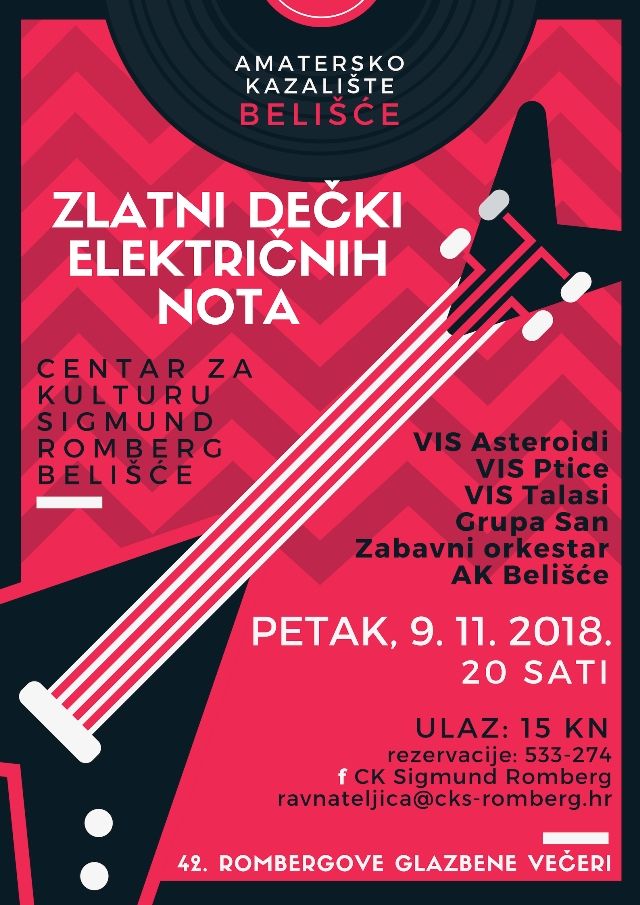 BELIŠĆE U petak, 9. studenog 2018. godine, u okviru 42. Rombergovih glazbenih večeri u Centru za kulturu Sigmund Romberg u Belišću održat će se 5. glazbeni program Zlatni dečki električnih nota s početkom u 20 sati.