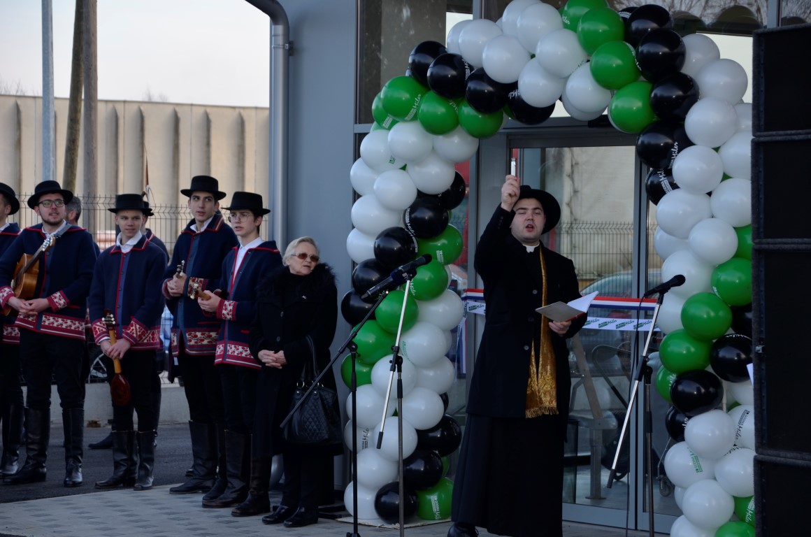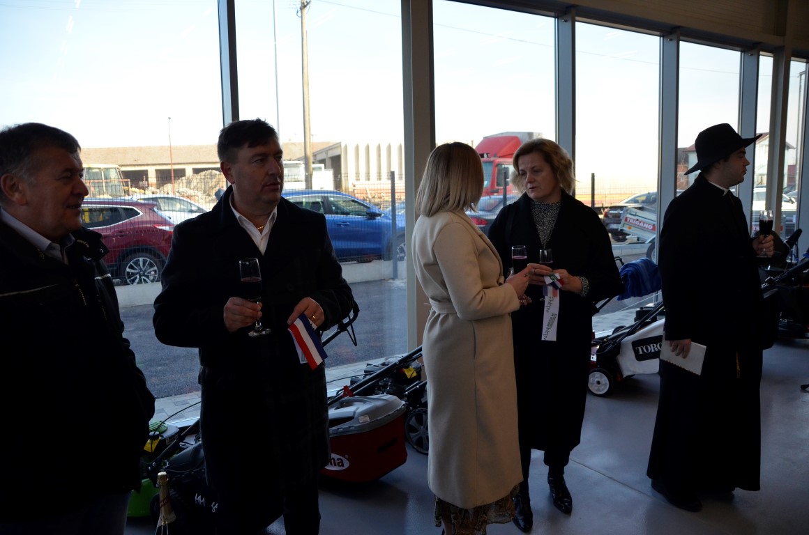 Blagoslov novootvorenog objekta izrekao Luka Ćosić kapeln župe Valpovo, a tijekom današnjeg dana sve posjetitelje i kupce prodajno servisnog centra s više od 13.000 artikala u ponudi, očekuju prigodni darovi i glazbeni program u izvođenju Tamburaškog sastava Krizni stožer iz Koprivnice.