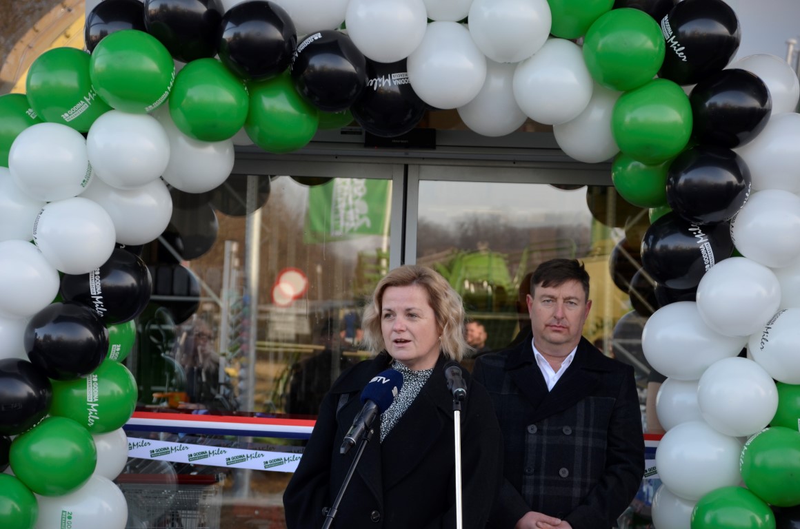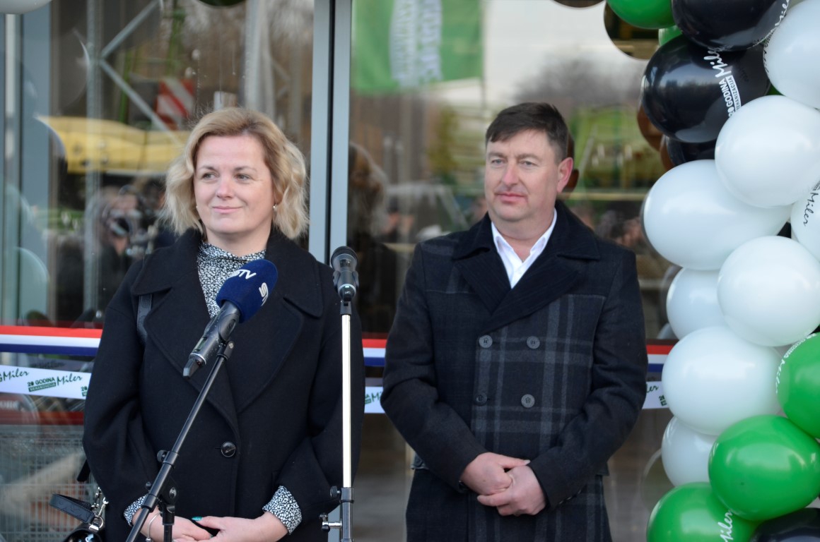 Poslovnu jedinicu koja na 600m² prodajnog prostora od ukupno raspoloživih 1800 m² nudi bogat asortiman poljoprivredne i šumarske mehanizacije, rezervnih dijelova, vrtni program, auto prikolice, akumulatore, dječje igračke i drugu raznovrsnu poljoprivrednu opremu i potrepštine, zajednički su presijecanjem vrpce otvorili vlasnik tvrtke Mehanizacija Miler, Branko Miler i predsjednica Skupštine Osječko-baranjska županije Ivana Bagarić .