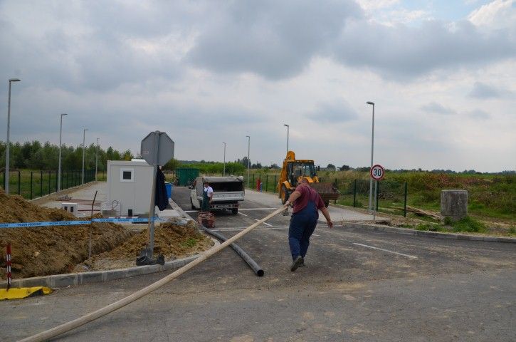 Iako radovi još nisu završeni, prema stanju koje smo na gradilištu zatekli danas, trebali bi biti gotovi vrlo skoro. Izvođač radova Osijek Koteks u velikoj je mjeri završio poslove. Opremanje dvorišta je čini se završeno, uredski je kontejner postavljen, a danas su radnici Dvorca d.o.o. za komunalne poslove instalirali priključak na vodovod.