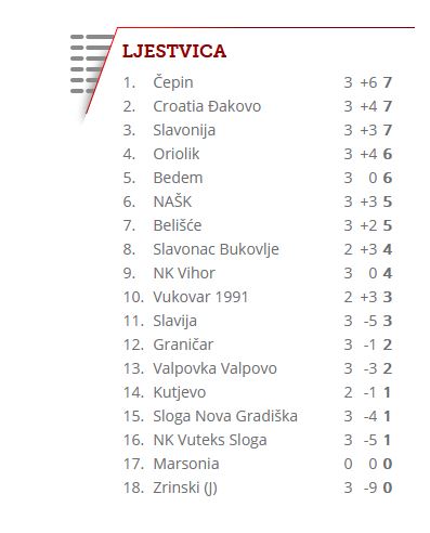 Ljestvica nakon 3. kola HNL Istok