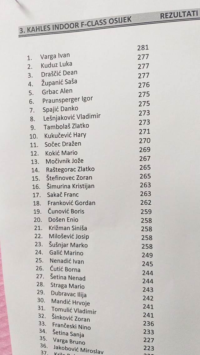 VALPOVO/OSIJEK U subotu, 25.ožujka u Osijeku na streljani Pampas održano je natjecanje u dalekometnom streljaštvu 3. KAHLES INDOOR F-CLASS OSIJEK u organizaciji streljačkog kluba Legija iz Osijeka.
