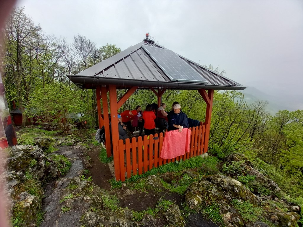 Oko 10 sati stižemo do mjesta Topličica gdje se nalazi planinarski dom „Grebengrad“. Dočekuje nas domaćin sa pićem dobrodošlice i pokazuje nam prostor u kojem ćemo boraviti. Kiša koja nas je pratila cijelim putem ne prestaje padati. Smjestili smo naše stvari u dom, doručkujemo i bez obzira na kišu odlučujemo ići na predviđeno hodanje. Kombijem odlazimo u mjesto Podevčevo gdje nam počinje markirana staza za vrh KT HPO Čevo – 562 m.