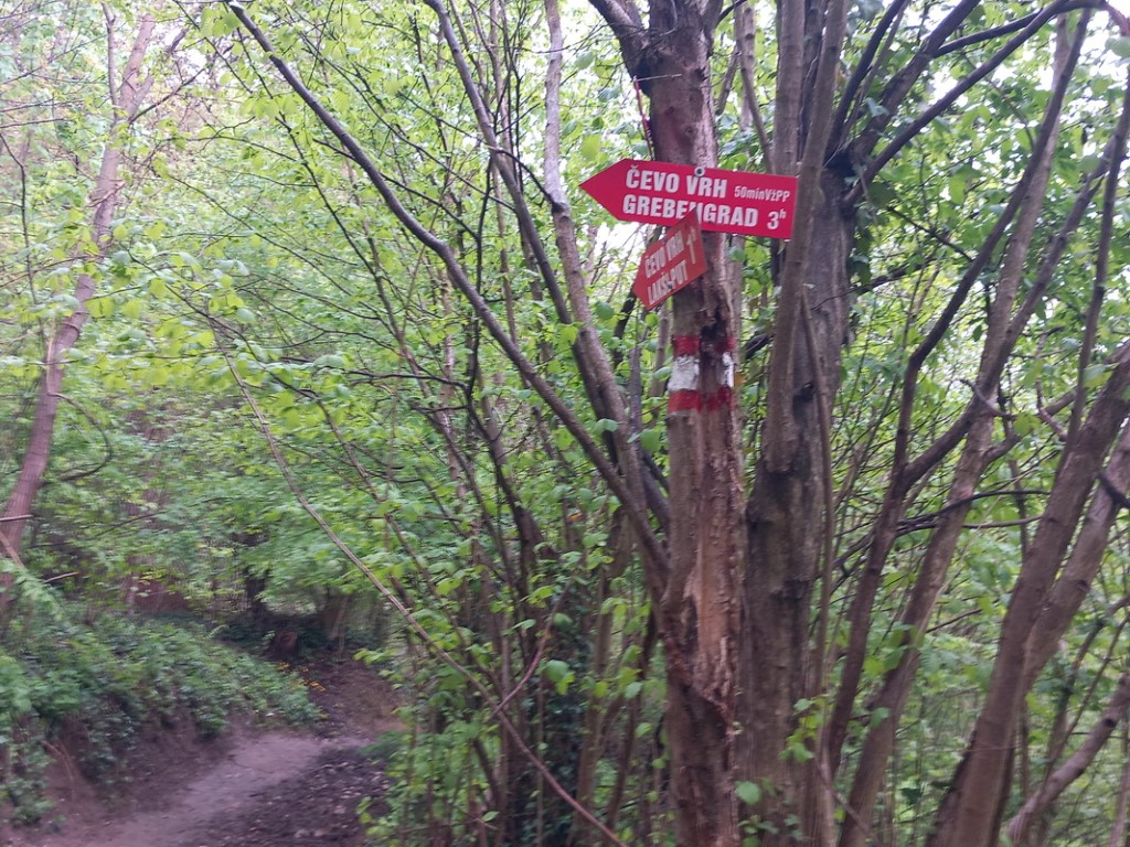 Čevo je najistočniji i najistaknutiji vrh Ivanščice. S južne je strane pitom, a sa sjeverne strane je strm i na više mjesta su se pojavile stijene. Zbog šiljastog izgleda naziva se i Zagorski Klek. Na samome vrhu je kameni stup i kutija sa žigovima, ali nema vidika. Nedostatak vidika nadomještaju vidici s dvaju vidikovaca u blizini - Balkona, zapadno od vrha, i Malog Čeva, istočno od vrha. Hodali smo kroz šumu uz kišu koja ne prestaje padati, polako penjući se prema vrhu. Na vrhu se kratko zadržavamo, lupamo pečate u planinarske dnevnike i natrag istim putem. Kratko se zadržavamo na vidikovcu Balkona ispod nadstrešnice te nastavljamo spust do početne točke. Vraćamo se u planinarski dom i zbog kiše koja i dalje pada…odustajemo od predviđenog hodanja. Ostavljamo ga za sutra i nadamo se ljepšem vremenu. Družimo se uz večeru i dogovor za sutrašnji dan.