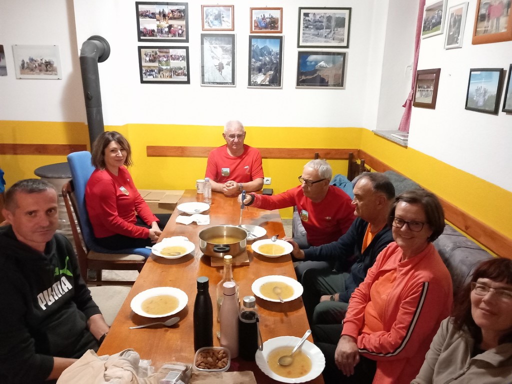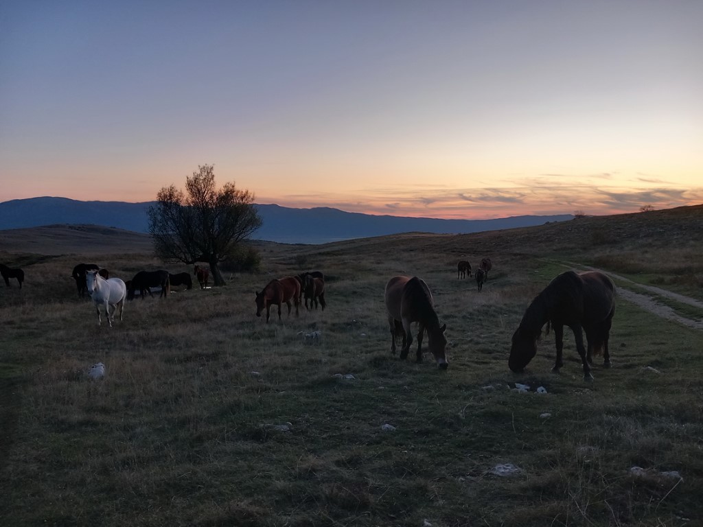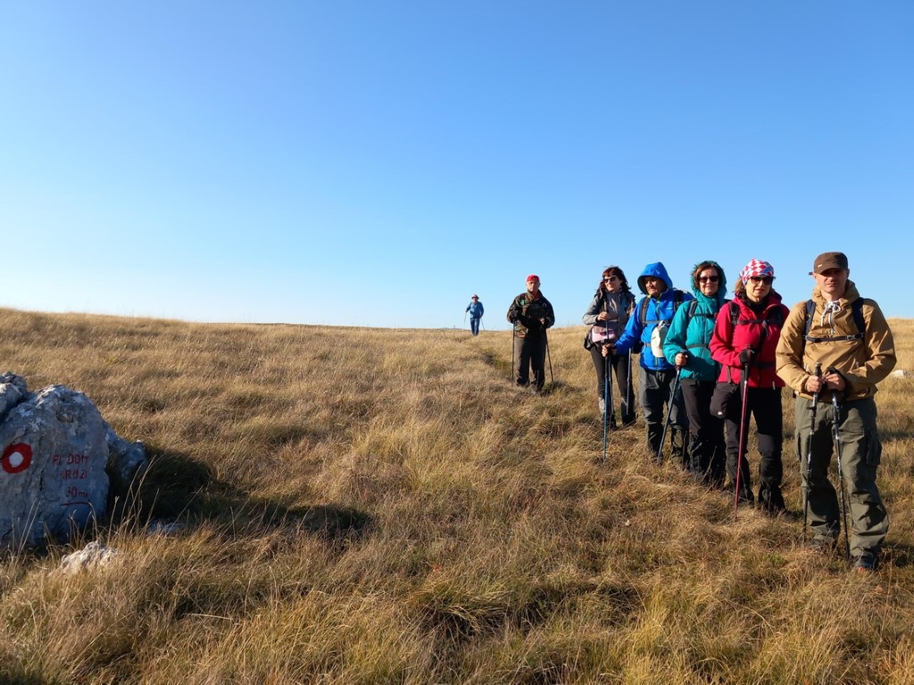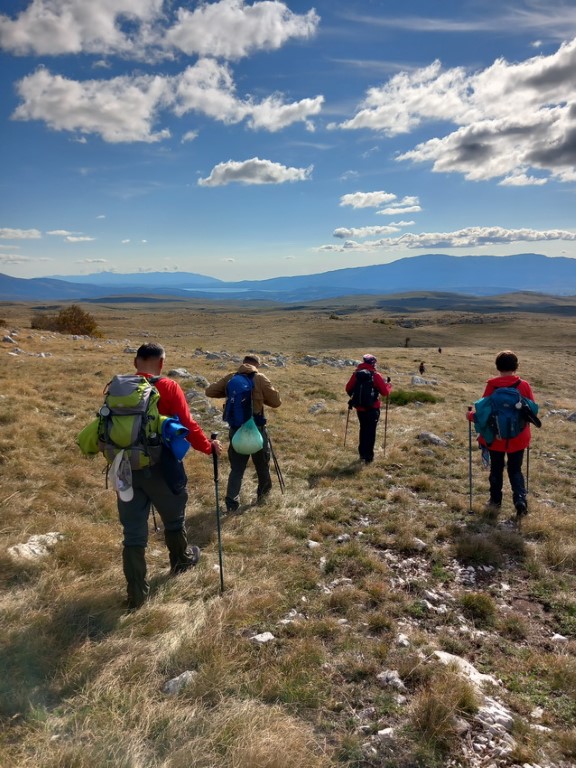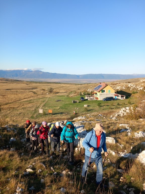 S obzirom da je vikend na cesti su gužve te prelazak granice i stižemo poslije 13 sati u grad Livno. U gradu nas čeka bivši predsjednik društva PD „Cincar“ Ivo Čeko i uz razgovor i kavu smo prisjećali prošlih vremena kad nas je on vodio na Cincar i Troglav. Planinari Belišća bili prvi gosti koji su spavali u pl.domu 2007.god., a bili smo i 2008.g.na otvaranju ovog doma (izgradnja doma krenula je 2004.g.). Dolazi i domaćin koji nas prati prema planinarskom domu na visoravni Kruzi koja je udaljena oko 13 km od grada. Visoravan Kruzi je na nadmorskoj visini između 1150 i 1350 m nadmorske visine, prostire na više od 200 km2. Visoravan je poznata po stadu divljih konja koje na njoj obitava. Planinarski dom „Kruzi“ izgrađen je na 1265m/v. S obzirom da domaćin ima obaveza, žurno nam cijepa drva, unosi ih u dnevni boravak te nam ukratko sve objasnio i odlazi. Naložili smo peć da se dom zagrije, te skuhali kavu i uživali na terasi doma promatrajući planine oko nas i divlje konje oko doma. Unijeli smo naše stvari, malo prošetali oko doma i uživali u zalasku sunca. Kuhanje lagane večere, večera, poziranje ispred naše slike što visi u planinarskom domu, druženje i dolazak na spavanje.