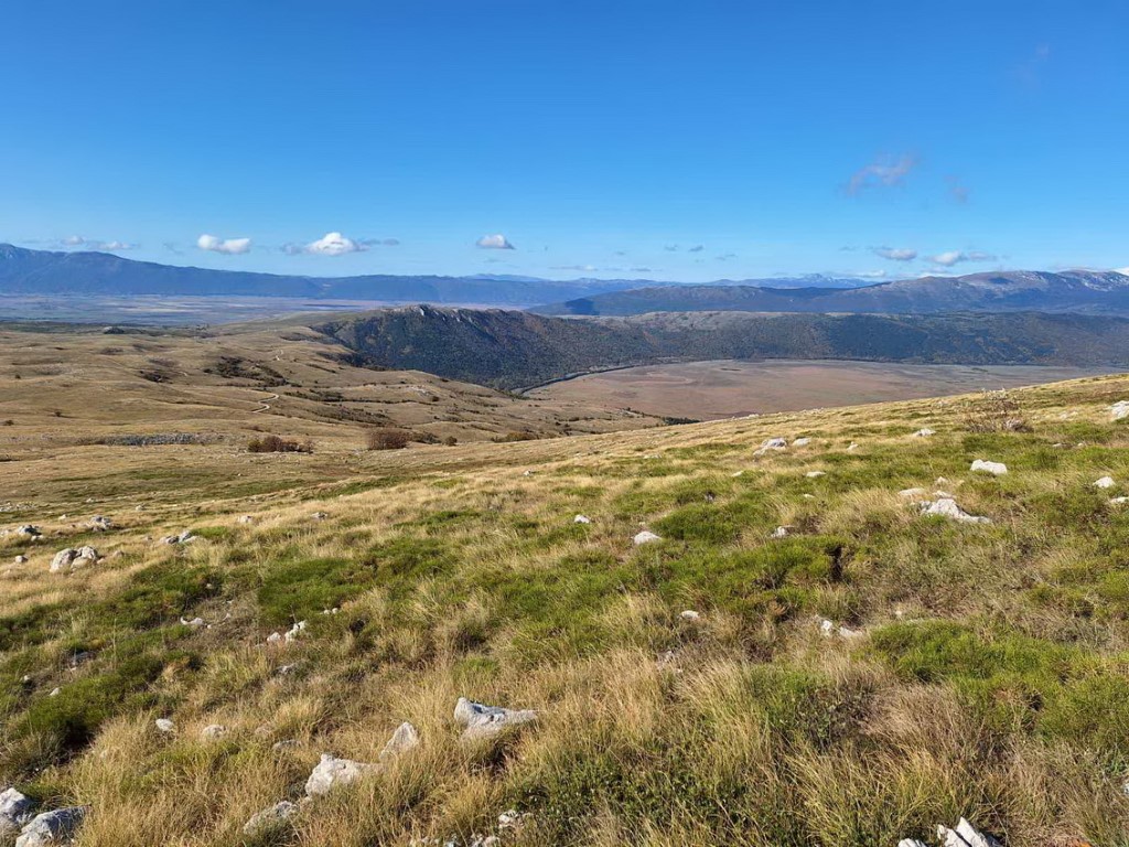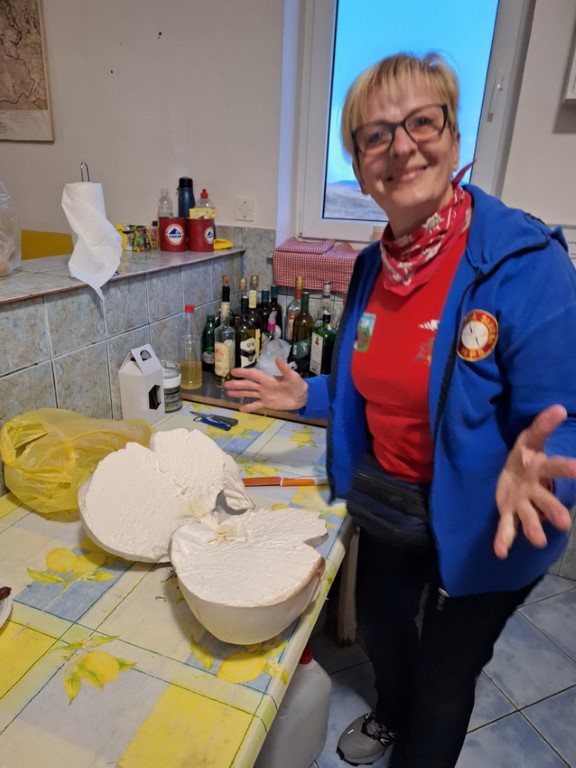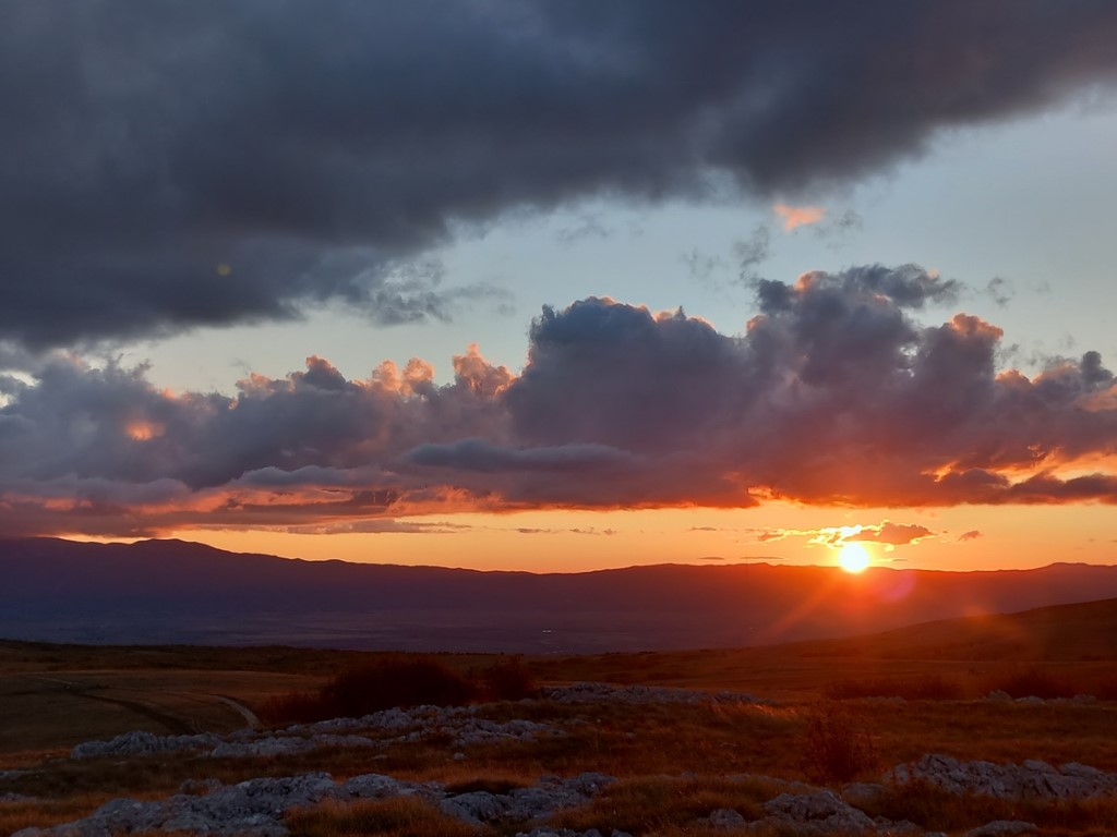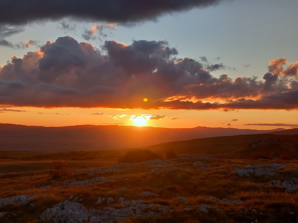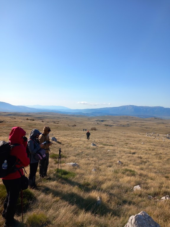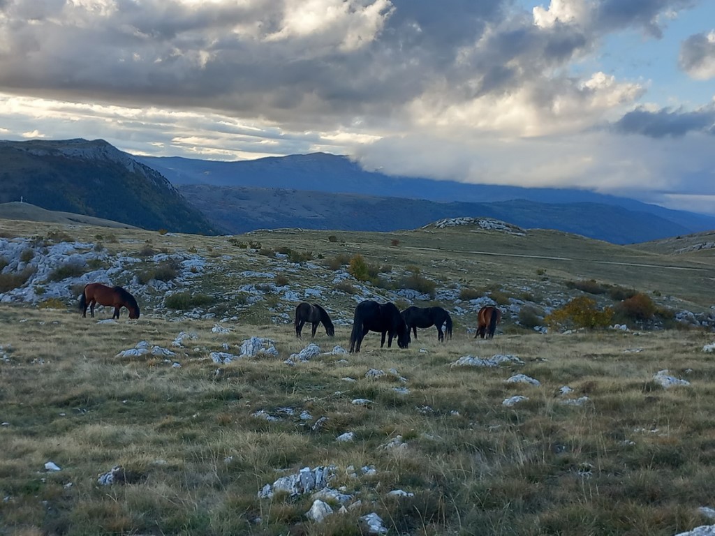 S obzirom da je vikend na cesti su gužve te prelazak granice i stižemo poslije 13 sati u grad Livno. U gradu nas čeka bivši predsjednik društva PD „Cincar“ Ivo Čeko i uz razgovor i kavu smo prisjećali prošlih vremena kad nas je on vodio na Cincar i Troglav. Planinari Belišća bili prvi gosti koji su spavali u pl.domu 2007.god., a bili smo i 2008.g.na otvaranju ovog doma (izgradnja doma krenula je 2004.g.). Dolazi i domaćin koji nas prati prema planinarskom domu na visoravni Kruzi koja je udaljena oko 13 km od grada. Visoravan Kruzi je na nadmorskoj visini između 1150 i 1350 m nadmorske visine, prostire na više od 200 km2. Visoravan je poznata po stadu divljih konja koje na njoj obitava. Planinarski dom „Kruzi“ izgrađen je na 1265m/v. S obzirom da domaćin ima obaveza, žurno nam cijepa drva, unosi ih u dnevni boravak te nam ukratko sve objasnio i odlazi. Naložili smo peć da se dom zagrije, te skuhali kavu i uživali na terasi doma promatrajući planine oko nas i divlje konje oko doma. Unijeli smo naše stvari, malo prošetali oko doma i uživali u zalasku sunca. Kuhanje lagane večere, večera, poziranje ispred naše slike što visi u planinarskom domu, druženje i dolazak na spavanje.