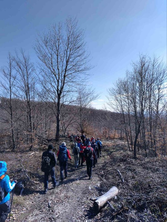 Polazak je od planinarskog doma Lapjak - Kaniška glava - Lipova glava i tu se razdvajaju grupe. Na kraću stazu odlazi se na Tisovac - Duboka, a duža staza na Češljakovački vis - pl.kuća Trišnjica - Duboka. Dio planinara odlazi po vlastitom izboru na Stari grad - Tauberove stijene, a dio putem do lovačke kuće Duboka - Trišnjica. Svi su uživali u lijepom vremenu i prvim vjesnicima proljeće. Domaćin je za sve priredio tradicionalni ručak - pečena jaja sa slaninom i srijemušem po pristupačnoj cijeni. Nakon ručka slijedi povratak putem do Velike i povratak doma.