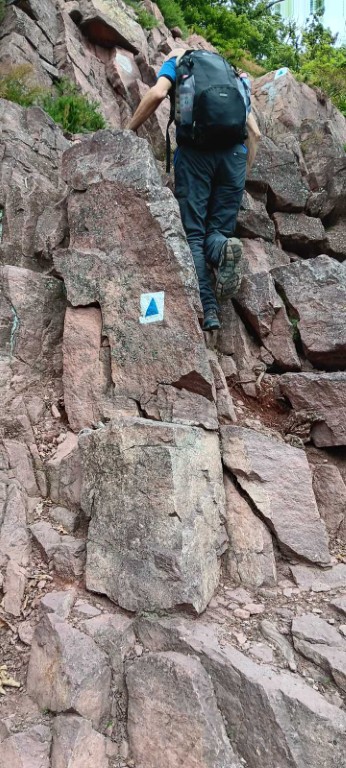 Put je najvećim dijelom vodio kroz šume i srednje visoko raslinje. Uz kraće odmore imali smo i dva duža: kraj crvenih stijena zanimljivog oblika (Babás) i na uređenom odmorištu blizu vrha na tom dijelu Mečeka (vrh Jakab – Hegy).