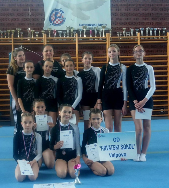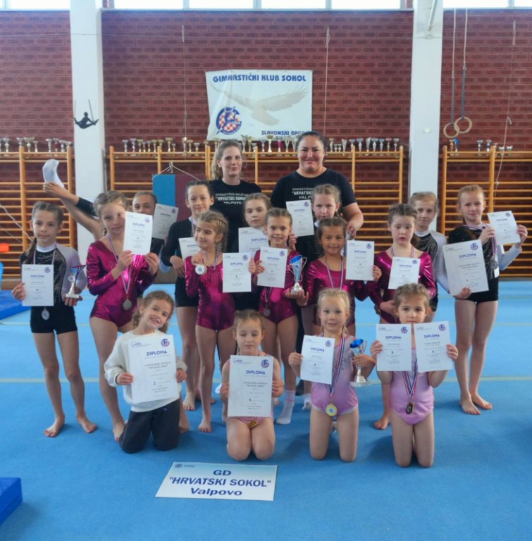 VALPOVO/SLAVONSKI BROD Mlade gimnastičarke Gimnastičkog kluba Hrvatski sokol sudjelovale su na 2. kolu Kupa Hrvatske u Slavonskom Brodu i kući se vratile s medaljama i peharima!