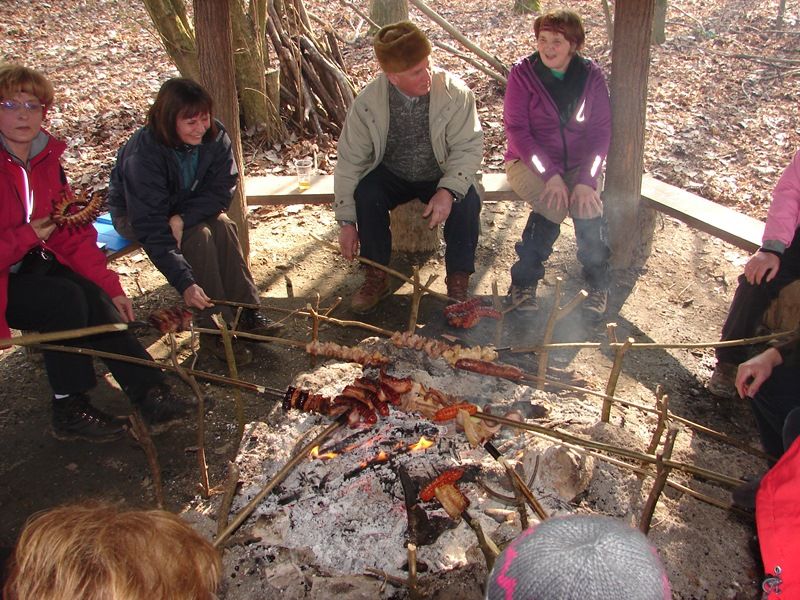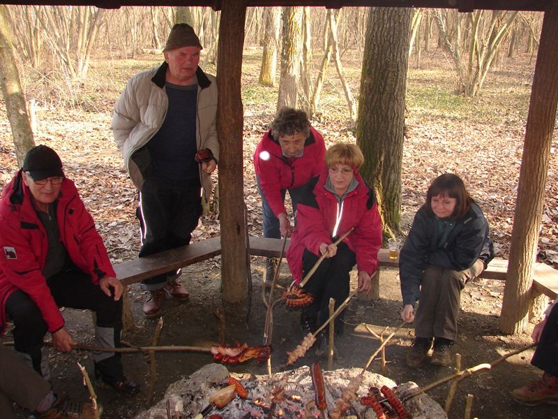 Po povratku na odmorištu na vatri pripremamo raznovrsne planinarske specijalitete i u njima uživamo. Okupljeni oko vatre, kao i obično zbijamo šale i prepričavamo viceve. U smijehu do suza protiče vrijeme. Neprimjetno je došlo vrijeme poslijepodneva i sve hladniji vjetar nas primorao na povratak. Pri izlasku iz šume – ponovno prekrasan prizor – tri srne hitro su pretrčale polje žita. Nakon kraćeg zadržavanja kod svetišta vesela grupa se razišla oko 16 sati.