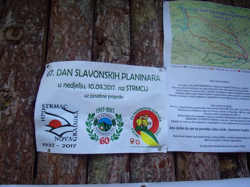Domaćin skupa bilo je HPD „Strmac“ iz Nove Gradiške, uz pokroviteljstvo Udruge Slavonski planinari Osijek. HPD „Strmac“ je obilježilo 85. obljetnicu osnivanja. Udruga Slavoski planinari 60. obljetnicu Slavonskog planinarskog puta (najdulje transverzale u Hrvatskoj) te obljetnicu 67. okupljanja planinara Slavonije. Okupilo se više od 250 planinara iz 23 planinarska društva, a bili su prisutni planinari iz BIH i Srbije. Planinari iz Planinarskog saveza Vojvodine su ovom prigodom odradili aktivnost „Po panonskim gorama“ (susret s planinarima Slavonije, koji je dogovoren između slavonskog i vojvođanskog saveza Protokolom iz 2013.g.). Ovo je četvrti susret, a idući će biti na Fruškoj Gori u Vojvodini, slijedeće godine. Dan je bio ugodan i sunčan i planinari su trima stazama krenuli na ovu prelijepu planinu. Naši predstavnici su se odlučili za najzahtjevniju stazu u pravcu najvišeg vrha Slavonije Brezovo Polje 984 m. Trebalo se dići i spustiti za 640 m. Sve je uspješno odrađeno. Nakon povratka sa staza, skup je nastavljen u veselom tonu. Upriličena su razna natjecanja, vježbanje na umjetnoj stijeni, planinarski grah, glazba, pjesma i druženje.