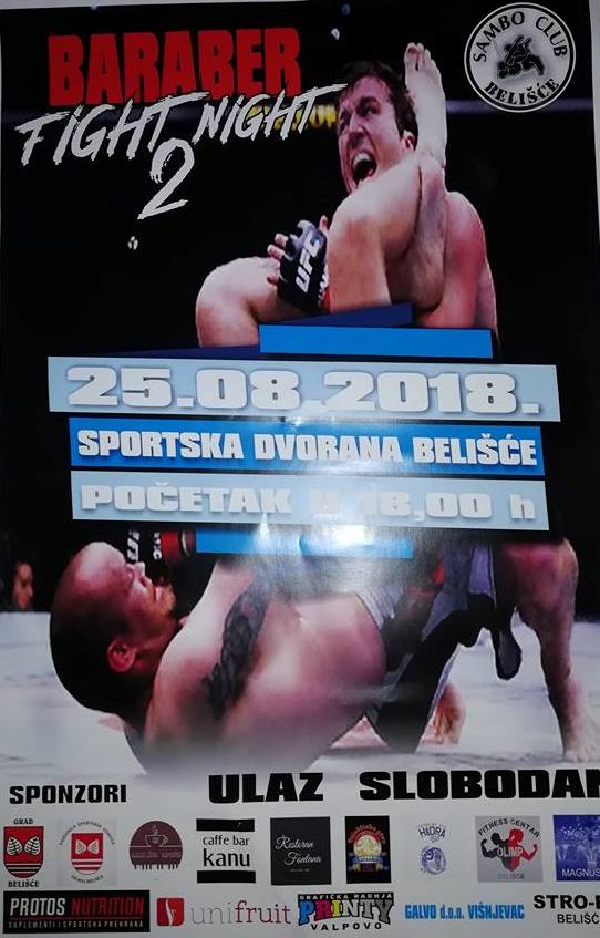 BELIŠĆE Sambo klub Belišće uz pomoć suorganizatora i sponzora u subotu, 25. kolovoza organizira Baraber Fight night, natjecanje u borilačkim vještinama po profesionalnim pravilima.