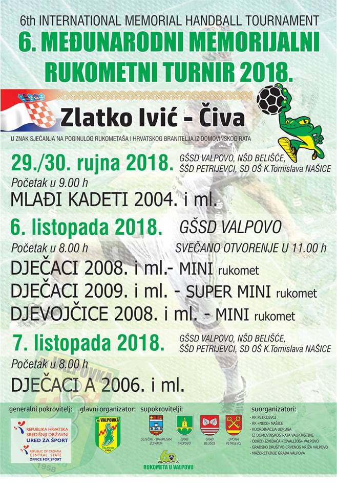 VALPOVO Rukometni Klub Valpovka, po šesti će puta biti domaćin Međunarodnog memorijalnog rukometnog turnira Zlatko Ivić Čiva, u znak sjećanja na poginulog rukometaša i hrvatskog branitelja iz Domovinskog rata.