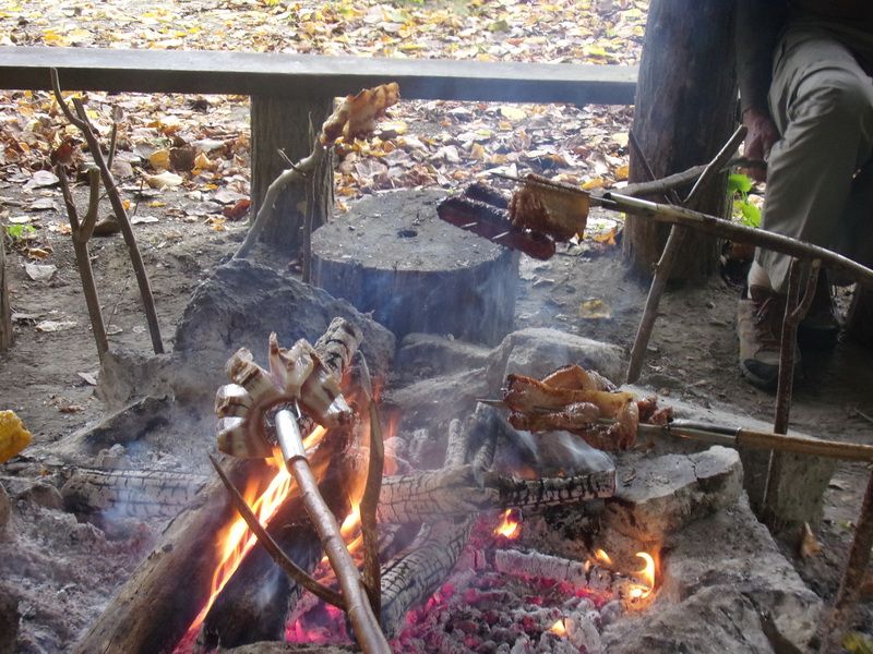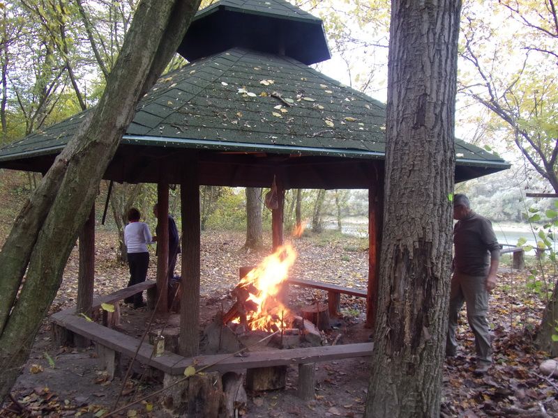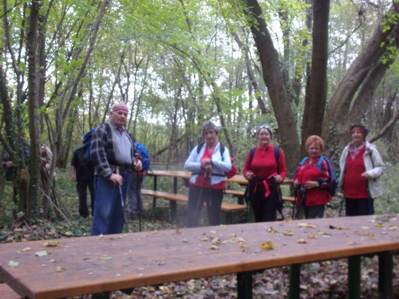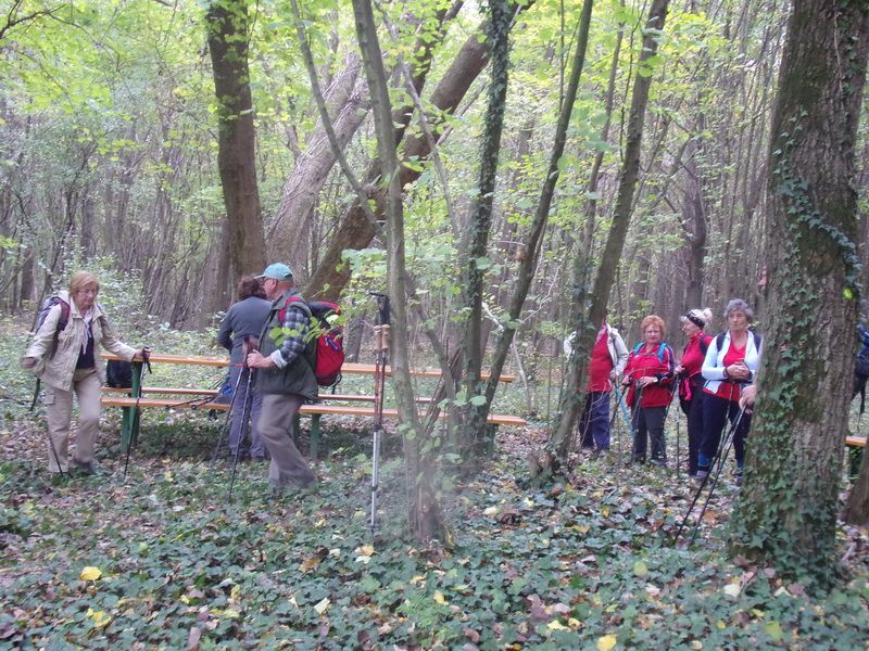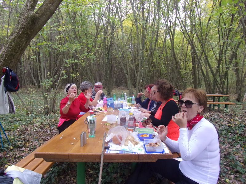 Na našu stazu možemo i bez vodiča, jer je većini dobro poznata. U 10 sati smo krenuli od svetišta Sv. Ane statzom kroz polje i šumu, pokraj bare Jugovače do našeg odmorišta kod Drave. Vrijeme je ugodno uz nešto jači topli vjetar.Šuma je u prelijepim jesenskim bojama, a na bari Jugovači među ocvalim lopočima uživaju labudovi s mladuncima. Po dolasku na odmorište, jedni pripremaju vatru, a drugi čiste stolove i klupe. Dio ekipe odlazi Vorihovim putem do vodocrpilišta. Prelijep je pogled na Dravu, čiji je vodostaj nizak, pa se uz obalu mogu vidjeti pješčane površine. Po povratku pripremamo na vatri razne delicije. Na velikom stolu se našlo puno toga slanog do slatkog . Nakon gastronomskih užitaka- opet konstatacija, da smo mogli i manje toga ponijeti. Nastupilo je ugodno druženje uz neizostavne šale do poslijepodneva. Povratak je bio istom stazom, a dio ekipe je malo dublje skrenuo u šumu u potrazi za gljivama sunčanicama. Gljive je suša usporila ili uništila- no nije bilo uzalud ugođaj u šumi sve je nadoknadio.