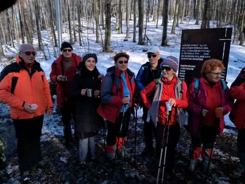 Za tri sata se stiglo na cilj-spomenik na lokaciji Anđina baraka. Tamo se odala počast poginulim braniteljima molitvom i paljenjem svijeća. Organizatori su pripremili tople napitke i kruh s raznim namazima. Nakon druženja uslijedio je povratak preko Nevoljaša i livada do Velike.