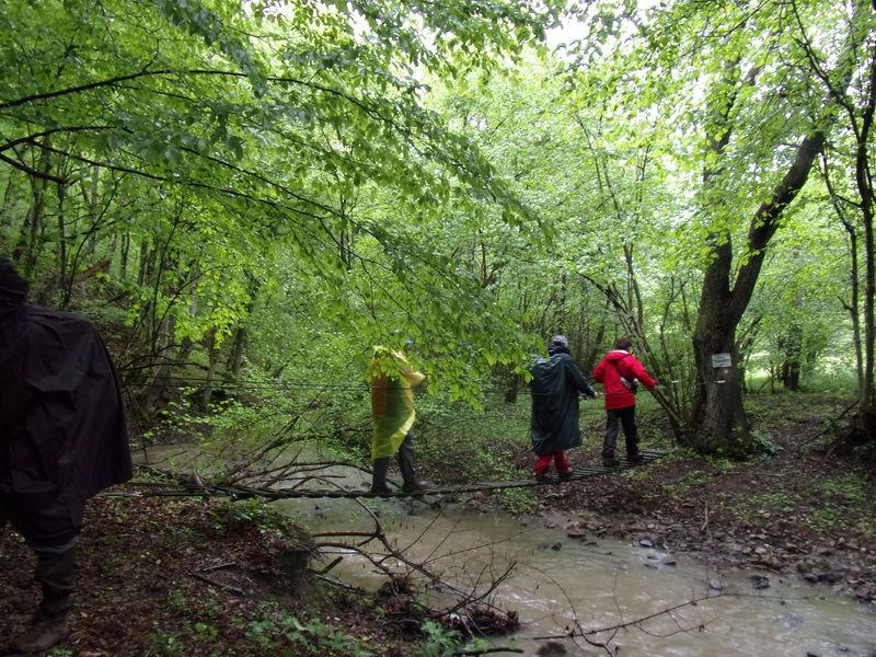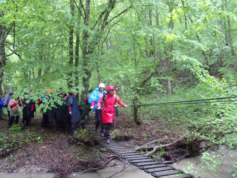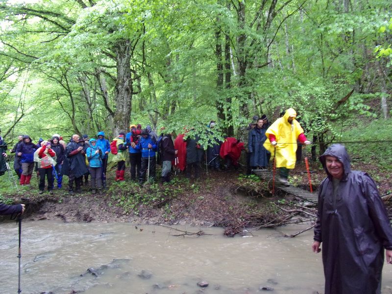 Nakon toga dio planinara je ostao u domu, a 65 se uputilo na pohod . Planirane su dvije staze: plava 3 sata hoda i crvena 5 sati. Cijela grupa kako je predviđeno stigla do visećeg mostića iznad potoka Stančevac. Ovaj mostić je dobio ime po graditelju Slivin most. Izgradio ga je prije 3 godine s prijateljima, jer ovdje prolazi trasa Slavonskog planinarskog puta, a često je bilo teško prijeći nabujali potok. Ne samo da ima funkciju, već svojom ljepotom obogaćuje ovaj dio krajolika. Kod mjesta mjesta Crkvište grupa se razdvojila i 17 planinara se uputilo na crvenu stazu, iako je bio prijedlog da se zbog lošeg vremena ne ide. Među tih 17 bilo je troje naših planinara. Ostali su nastavili kružno plavom stazom do Petrovog vrha i doma. Putem su evocirane uspomene na ovog iznimnog čovjeka. U toplini doma uz pripremljenu okrijepu, dočekani su povratnici s crvene staze mokri i promrzli, ali nikome nije bilo teško. Nakon druženja još neko vrijeme u domu uputili smo se kućama. Ovi susreti će se nastaviti i u idućim godinama za vikend prije datuma 8. svibnja-kada je Slivin rođendan.